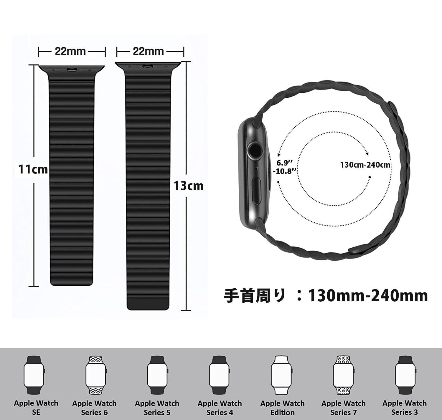 【適用機種】:このアップルウォッチ バンドはApple Watch Series SE/7/6/5/4/3/2/1の41mm/40mm/38mmに向け。130mm ~220mm の腕回りにフィードします。購入前にご確認お願い致します。