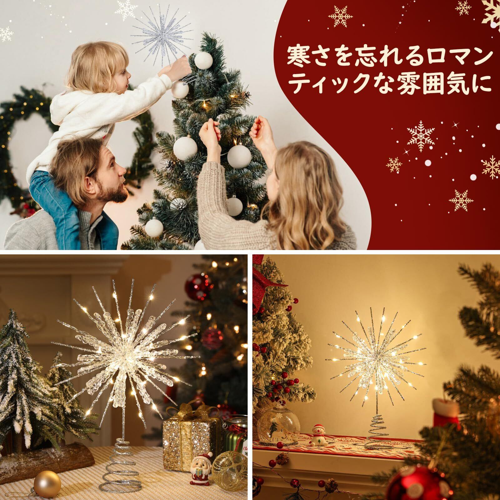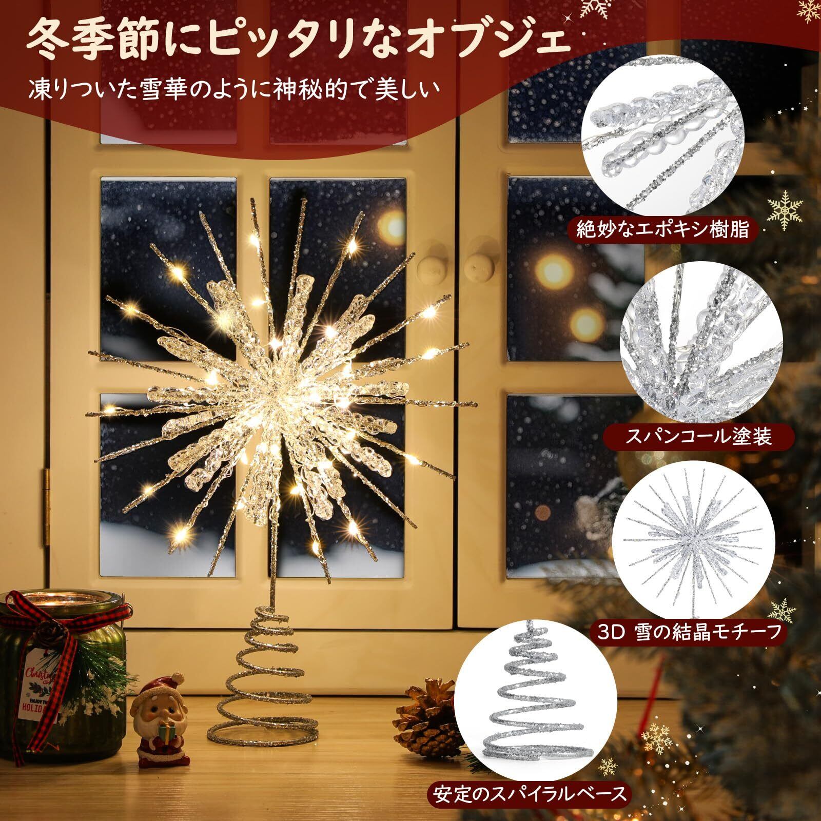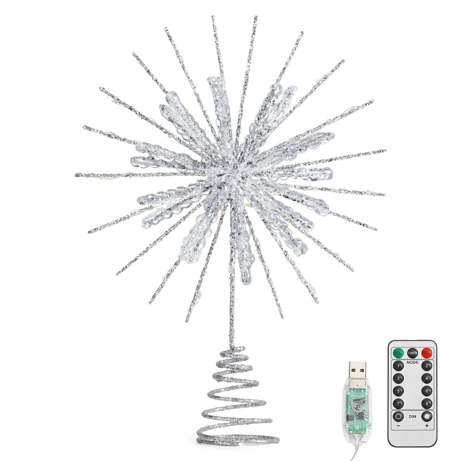 Lewondr クリスマスツリートップスター 雪の華オーナメント 凍り付く仕上げ 装飾 USB給電 8種点モード 6時間タイマー設定可 リモコン付き クリスマス/ハロウィン/バレンタインデー/記念日/パーティー プレゼント シルバー