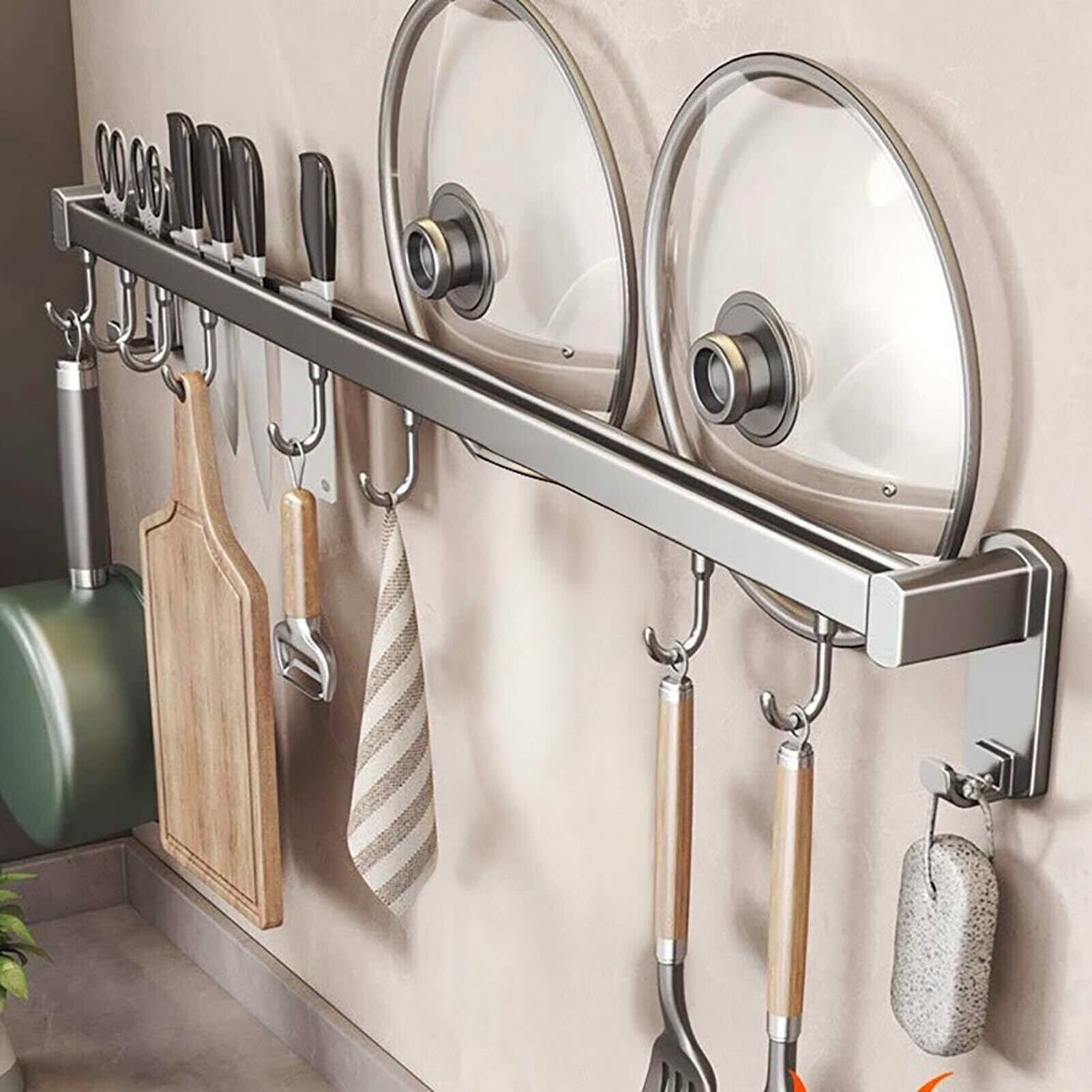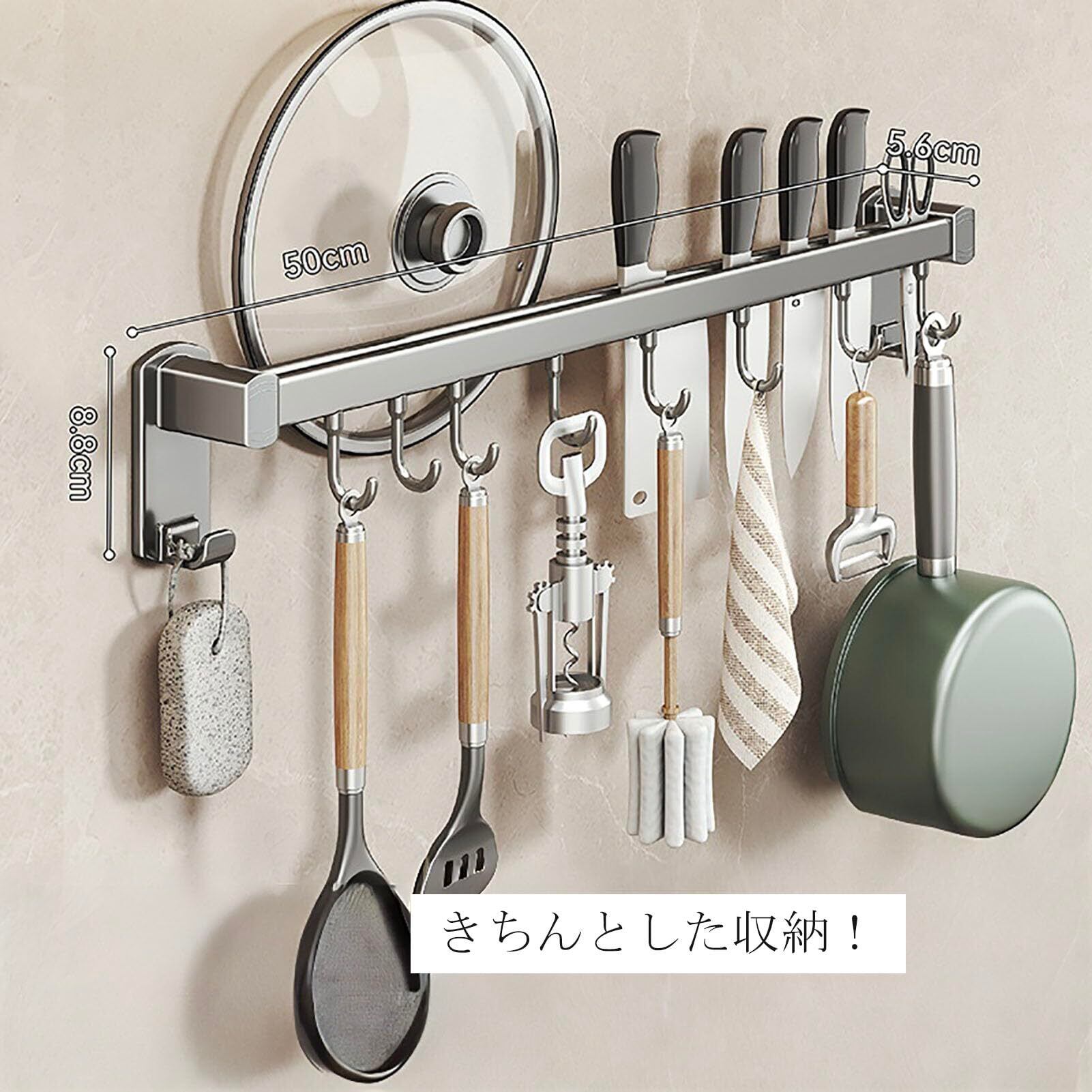 [簡単に取り付け] この50cmのキッチン壁掛けラックには、10個のフックが含まれており、簡単に取り付けて使用できます。いい家庭の収納です。もし商品についてご質問がございましたら、いつでもお気軽にお問い合わせください。