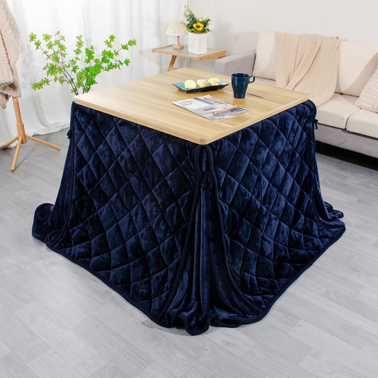 JEMA ハイタイプ こたつ布団 単品 ダイニングこたつ布団 テーブル用こたつ布団 ダイニングコタツ布団 省スペース 長方形 掛け布団 こたつ掛け布団 吸湿発熱 洗える ふわふわ感触 無地 フランネル素材 ネイビー 約240x265cm