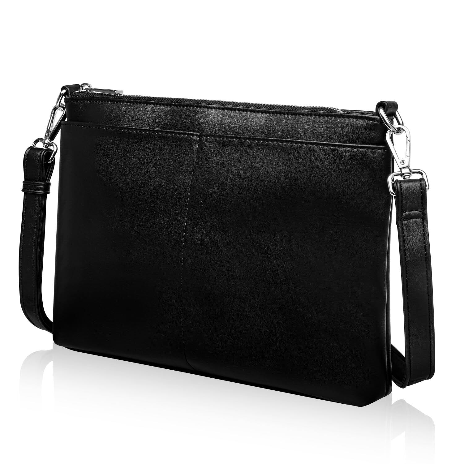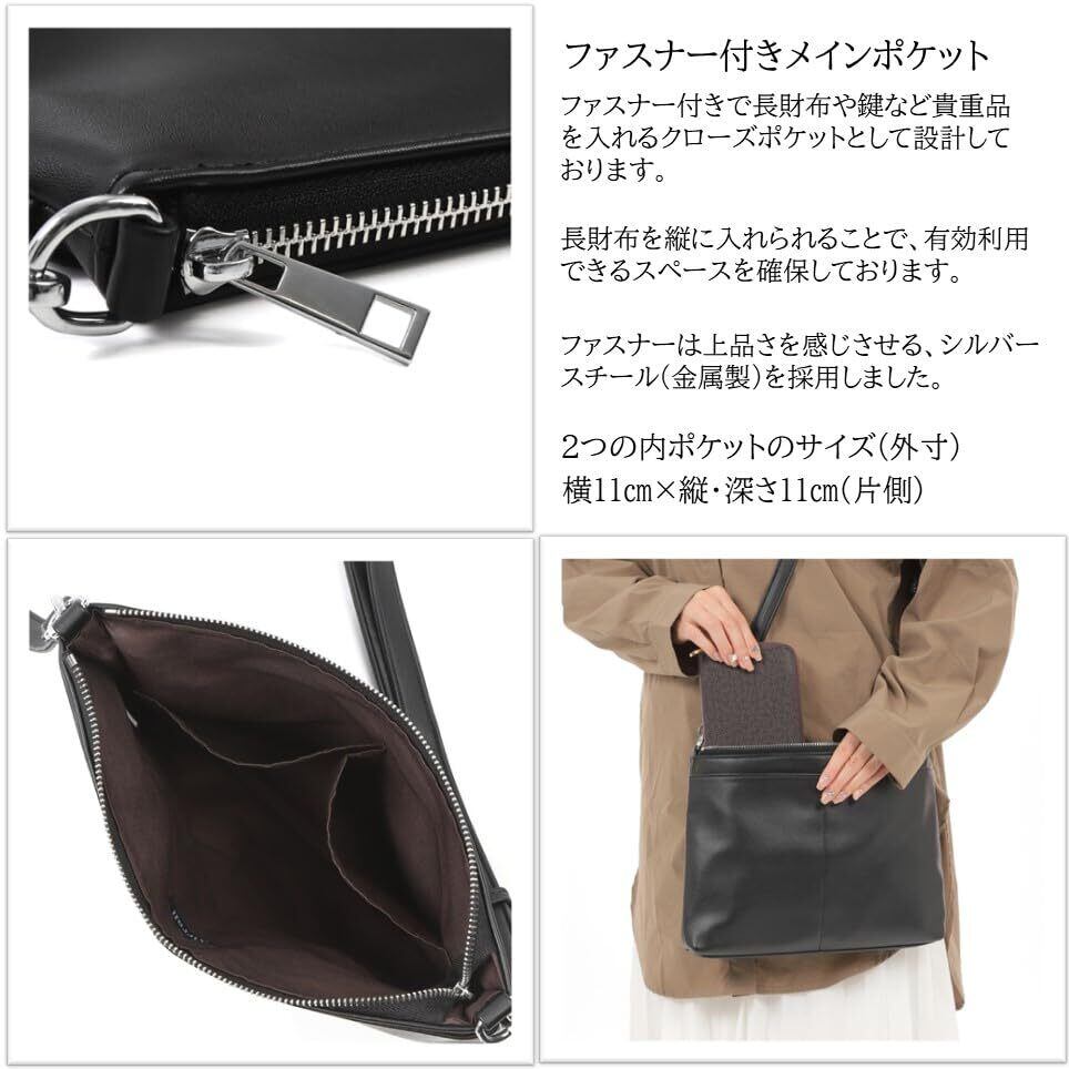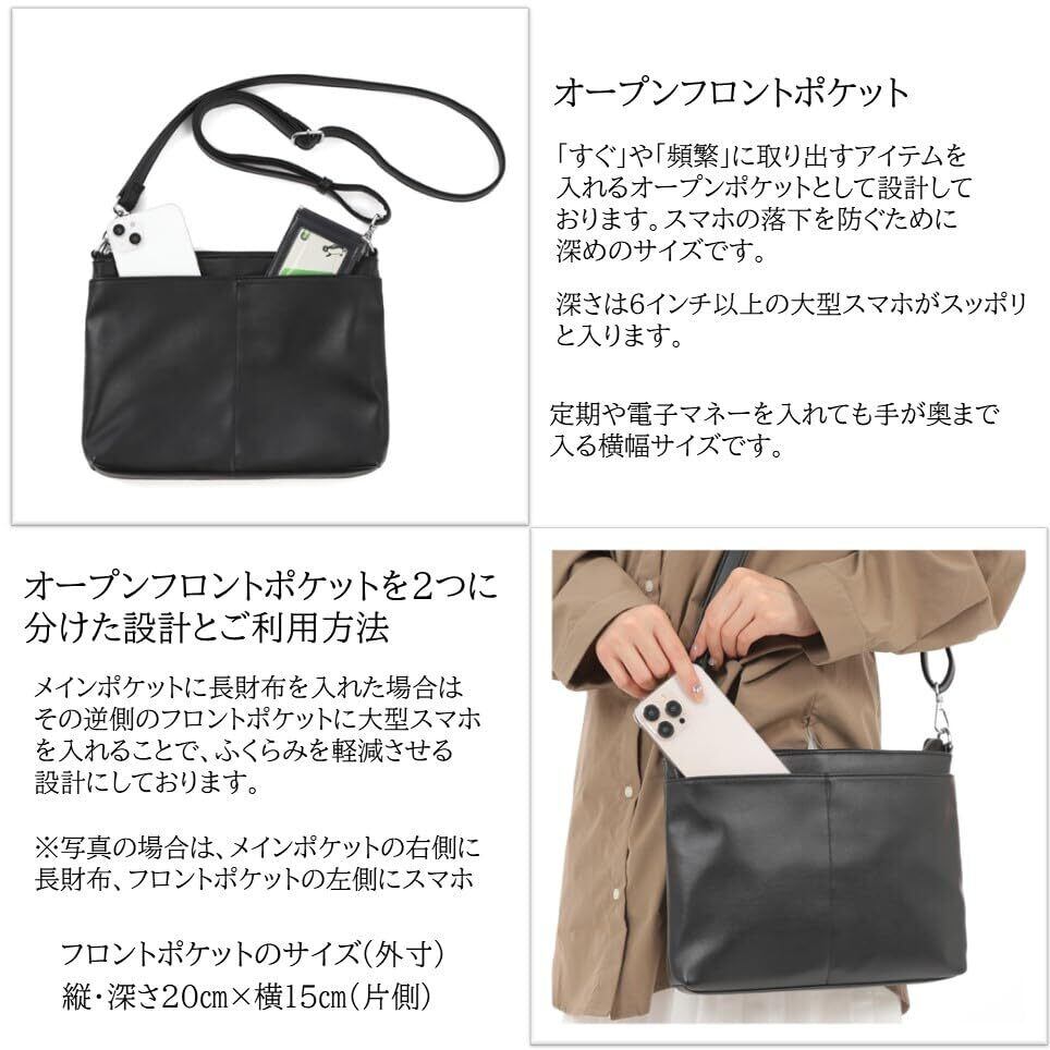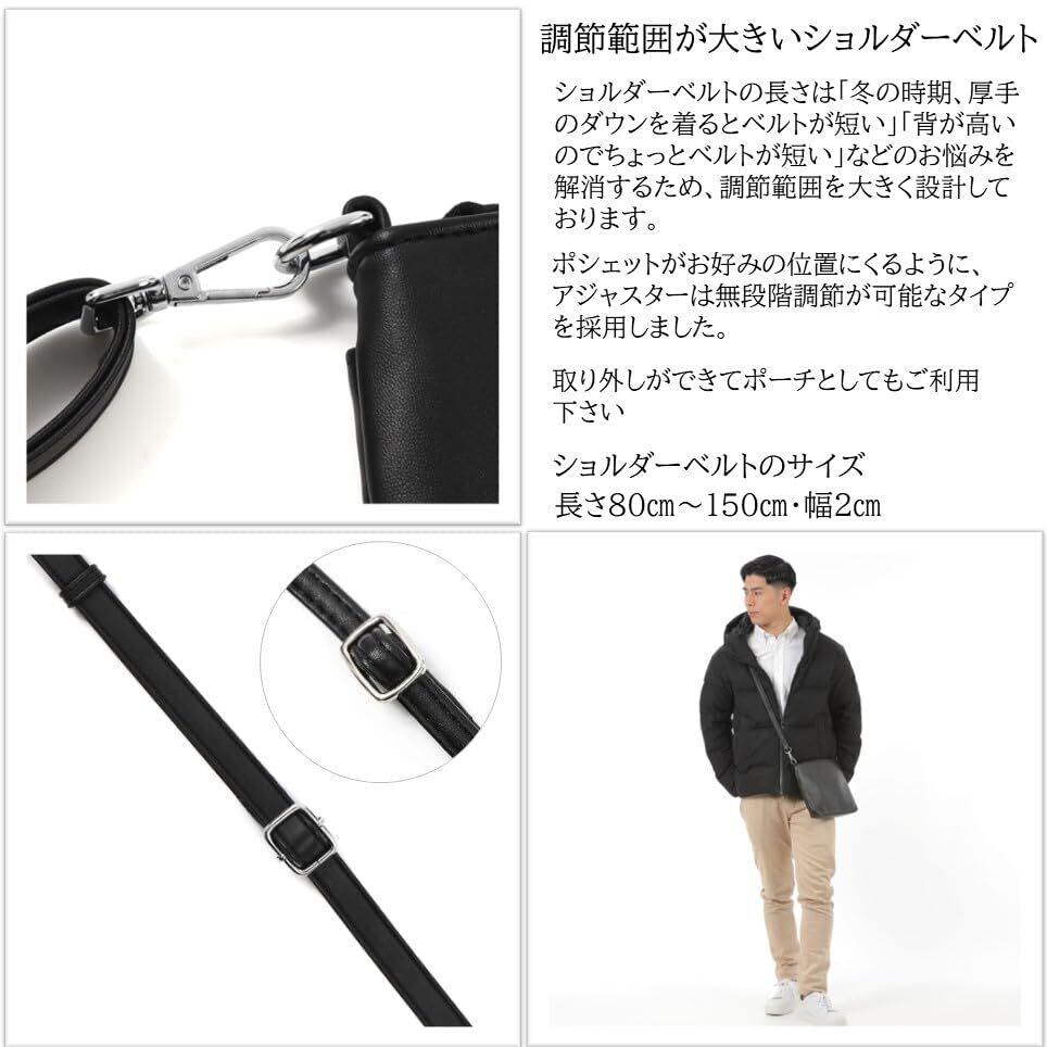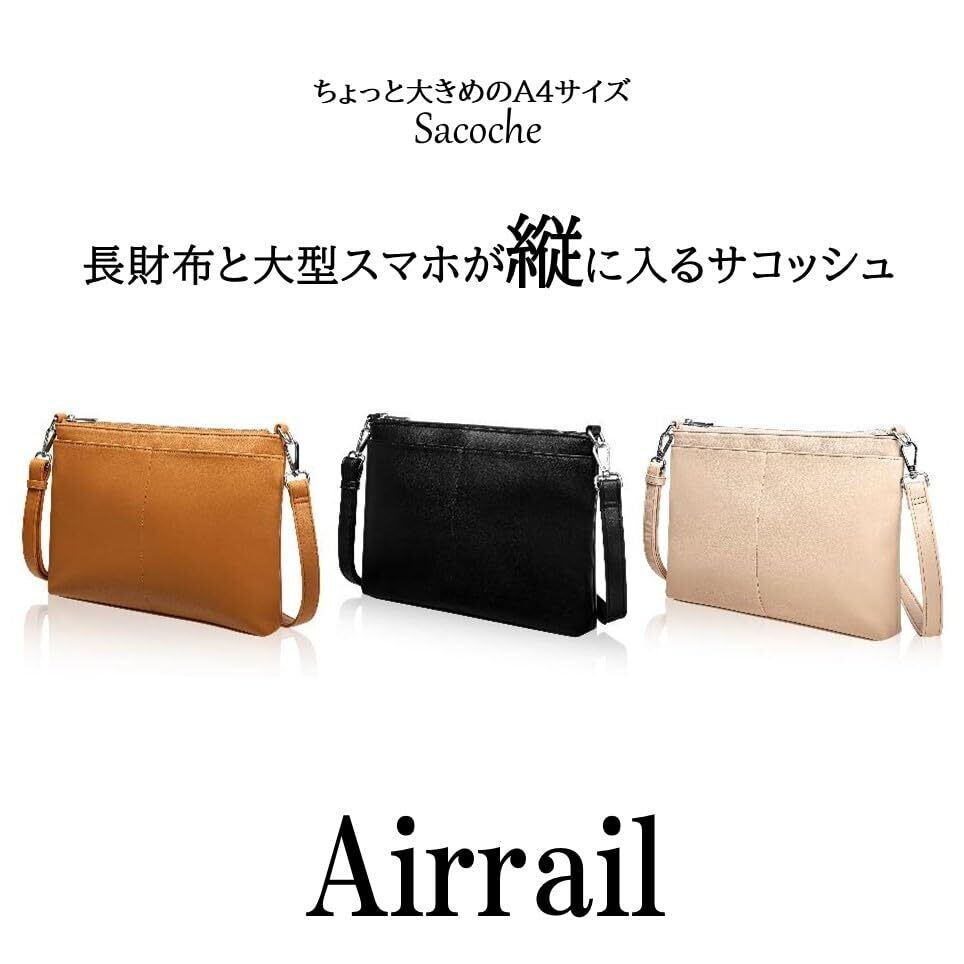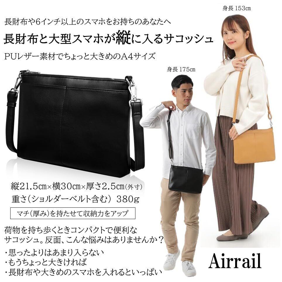 [Airrail] 長財布と大型スマホが縦に入るサコッシュ スマホの2台持ちもOK 斜めがけ 黒 PUレザー 大きめ 横型 軽量 長財布 6インチ以上スマホ レディース メンズ シンプル おしゃれ 仕事 サコッシュ (ブラック)