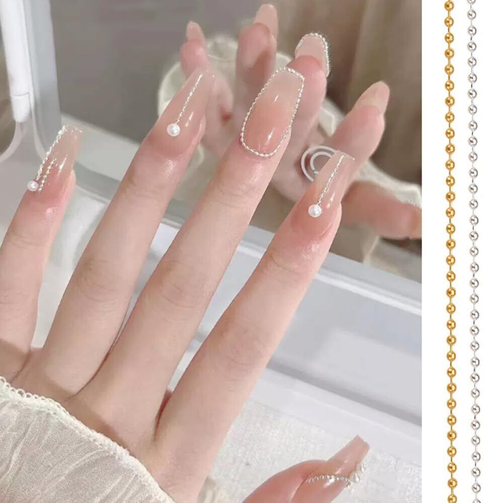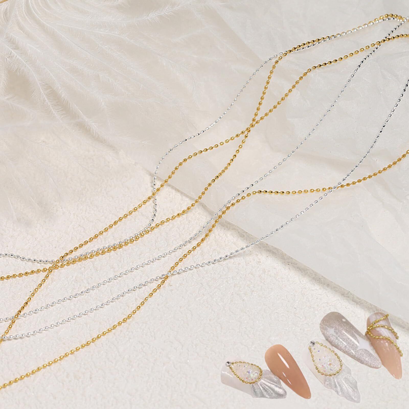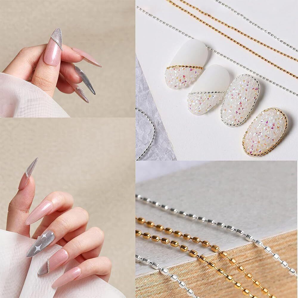 YACHUN ネイルパーツ ネイル チェーン 40cm 2本入り 極細 ネイル ボールチェーン 裁断可能 キラキラネイルジュエリーパーツ 3Dネイルパーツ デコパーツ 立体 DIY 手芸 (シルバー+ゴールド)