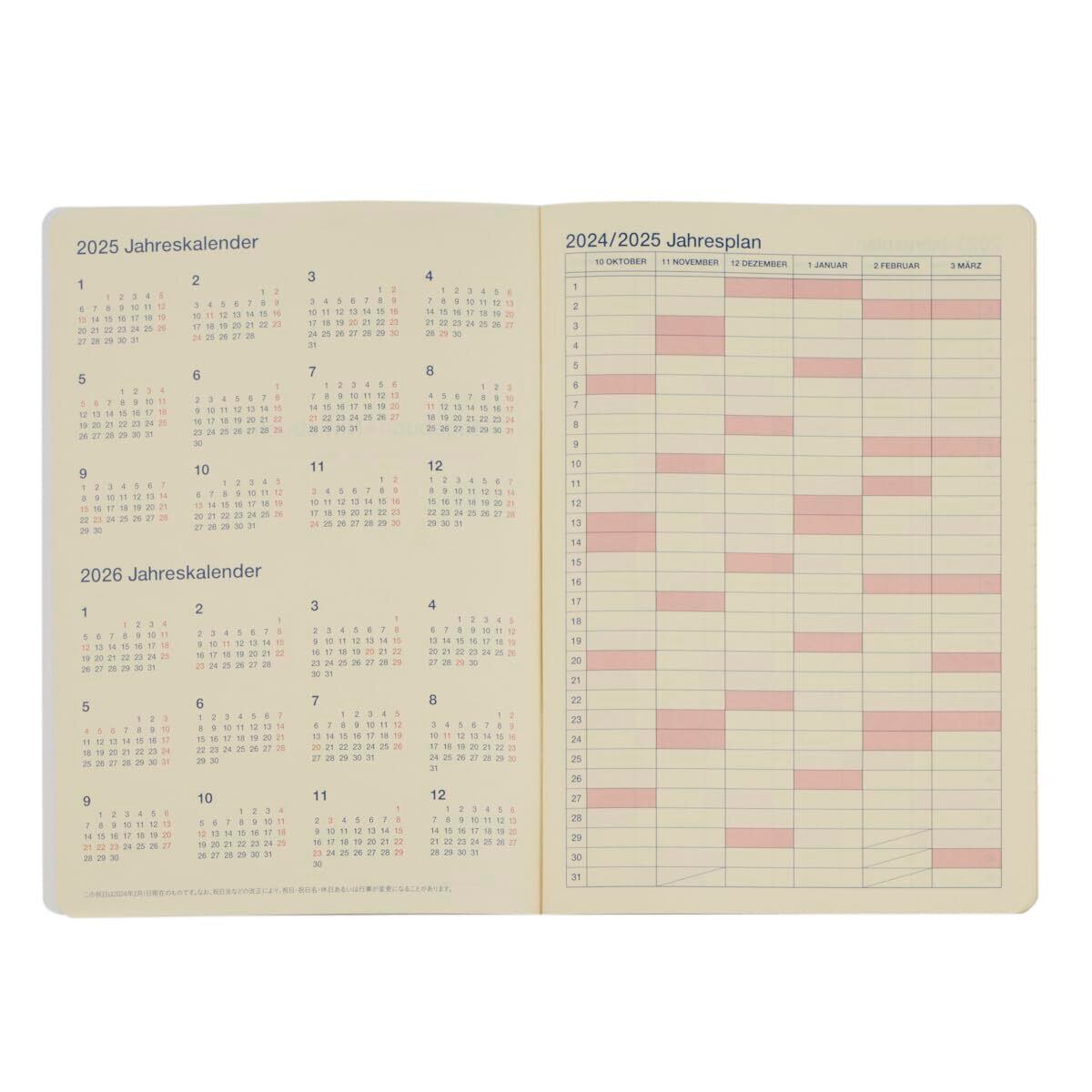 ■表紙を開くと、中扉、イヤーカレンダー、イヤースケジュール、マンスリー、方眼メモページが続きます