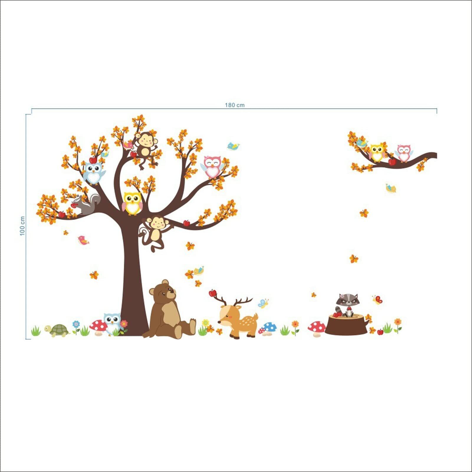 WOHAHA ウォールステッカー おしゃれ 木 葉っぱ 秋のシール 漫画の動物 可愛い ベア フクロウ サル 鳥 ウォールペーパー 子供 部屋 幼稚園 保育園 壁飾り toy room 壁に貼る 生活防水 ウォールすてっかー 居間の家庭装飾品 粘着剤付き 剥がせる 再利用可能