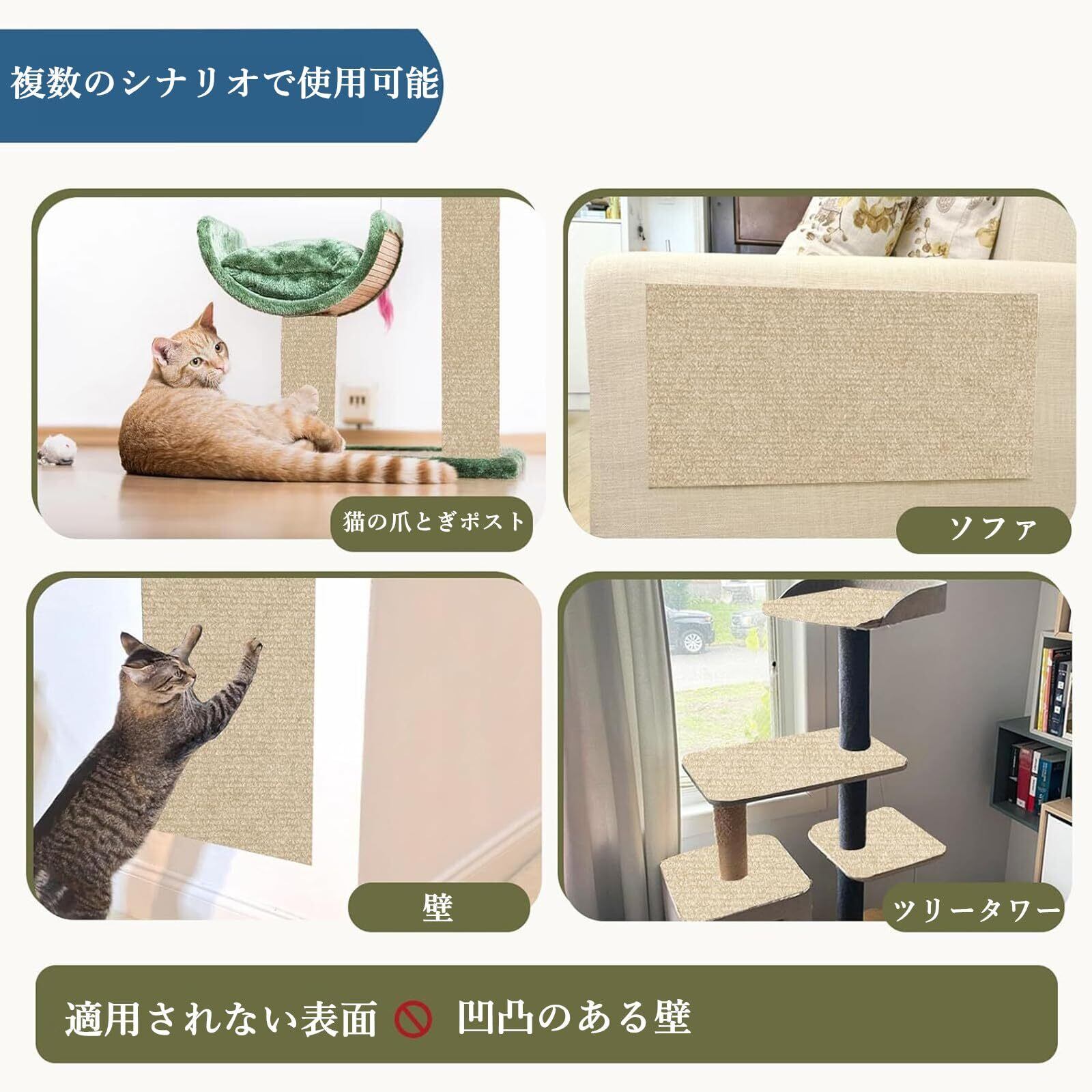 猫用爪とぎ 猫 爪研ぎ マット 爪研ぎシート 粘着式 30x100cm 猫引っ掻き傷防止 汚れ防止 爪とぎ 対策 ソファ 家具 壁 柱の保護に運動不足改善 猫挽きおもちゃ ネコ用品 (オフホワイト)
