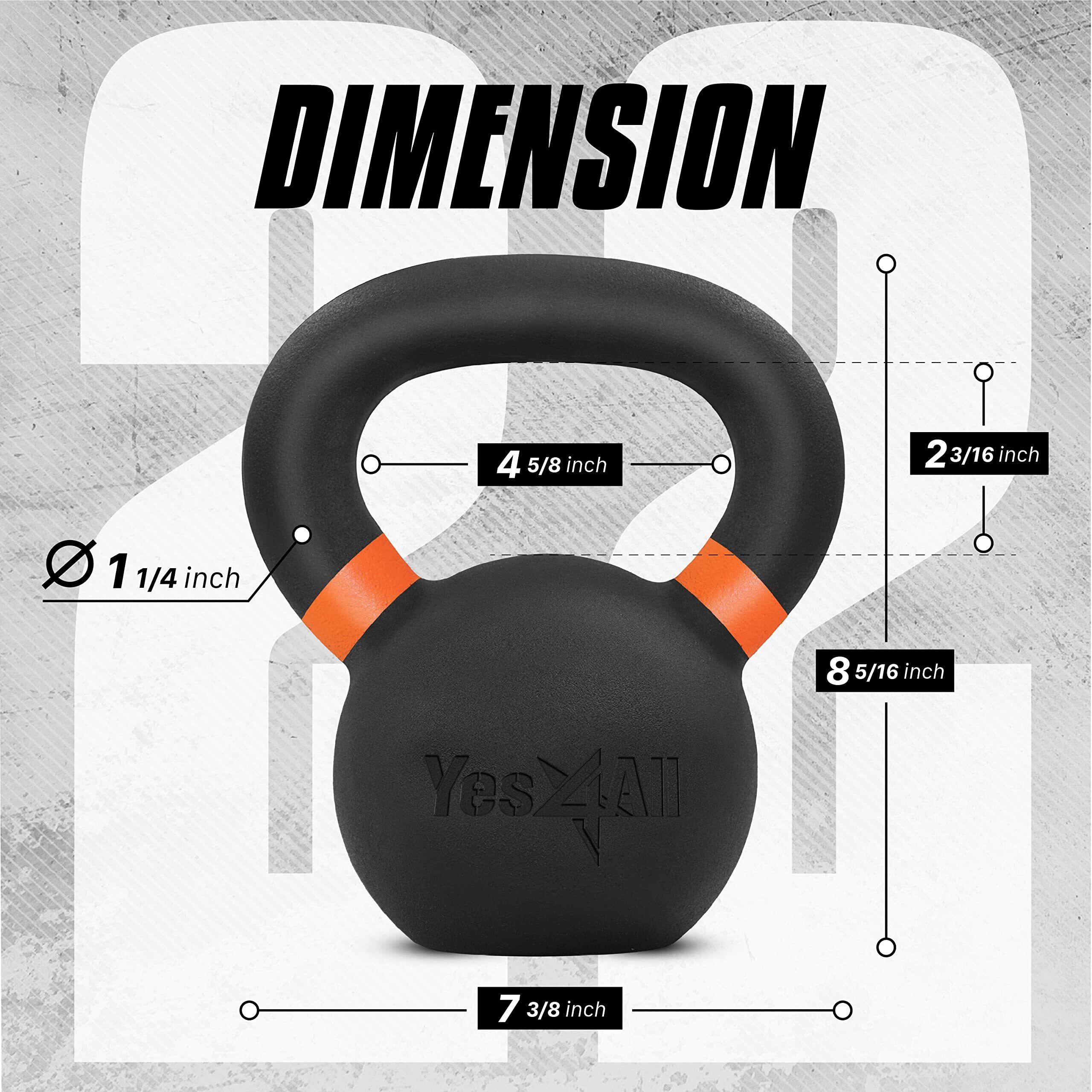 イエスフォーオール(Yes4All) ケトルベル 鋳鉄 トレーニング 筋力トレ 体幹 家庭用 エクササイズ用 ホームジム 4KG,10KG, 12KG, 14KG, 16KG, 24KG