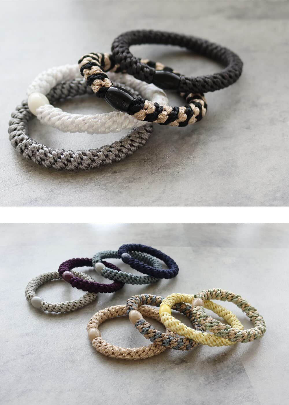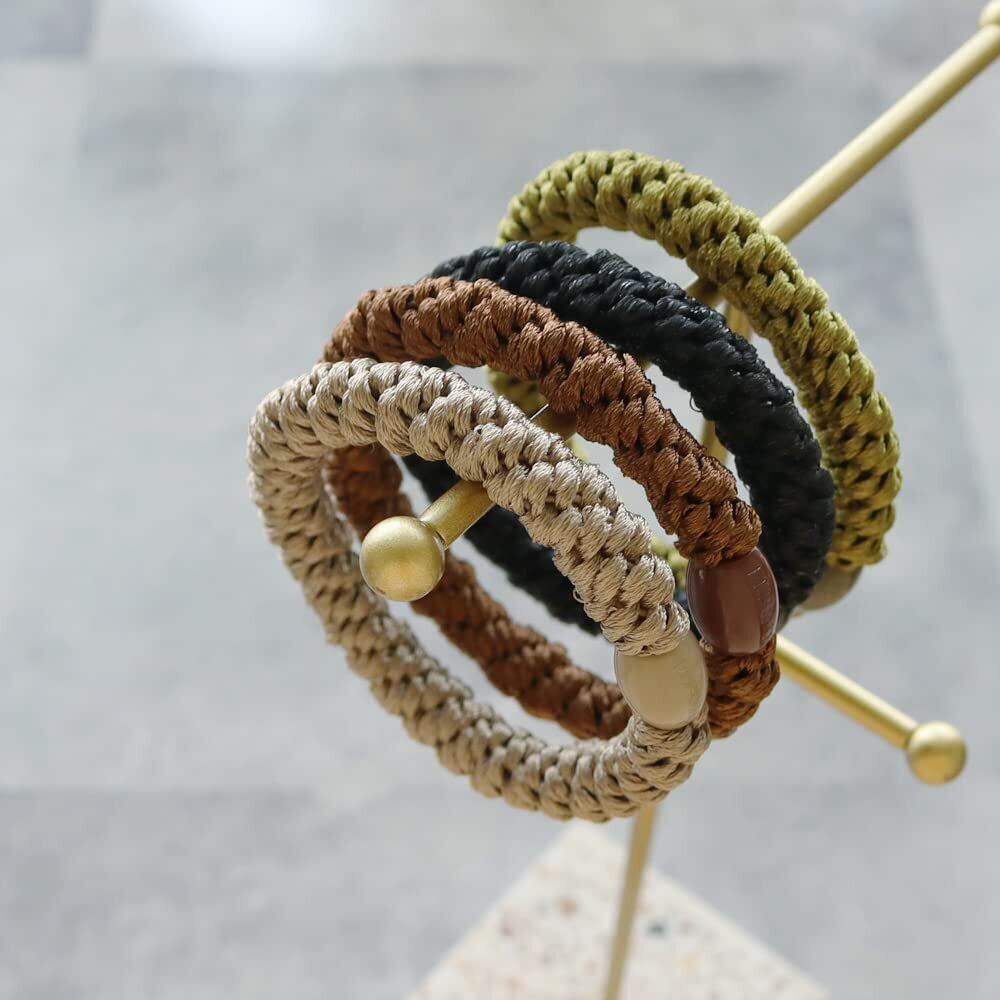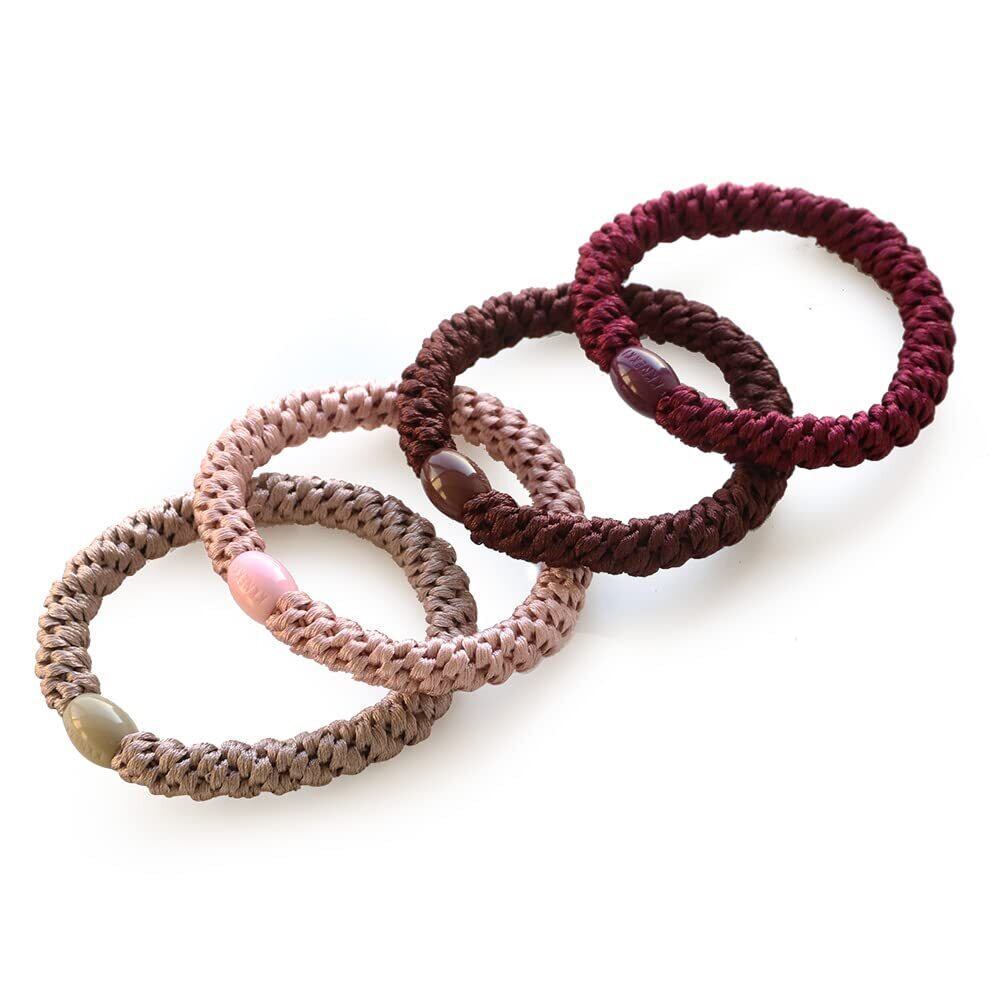 【おしゃれな4色セット】ロープの様に編み込まれた太めラインのヘアゴム4色セットです。セットの中にはラメが含まれるタイプもございます。