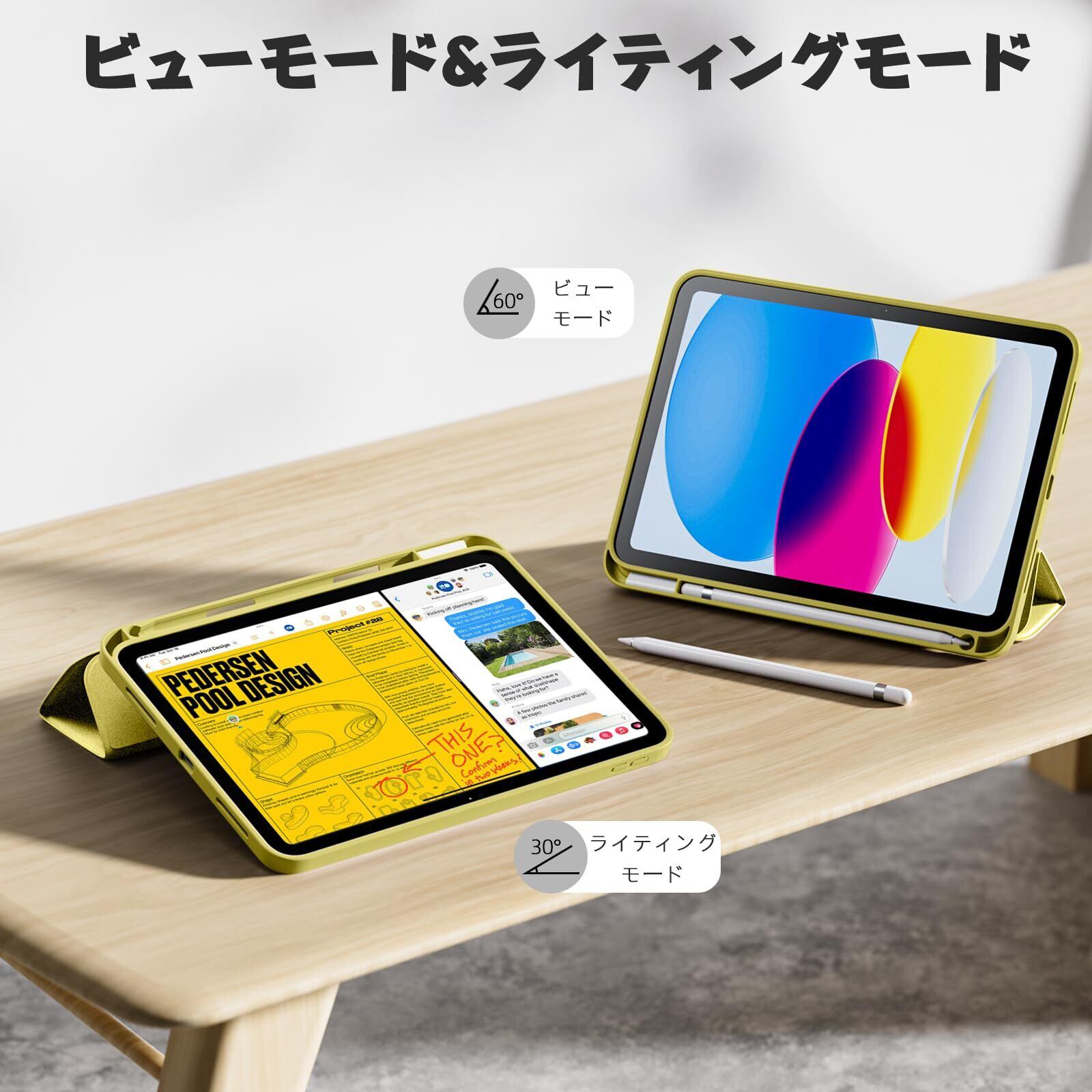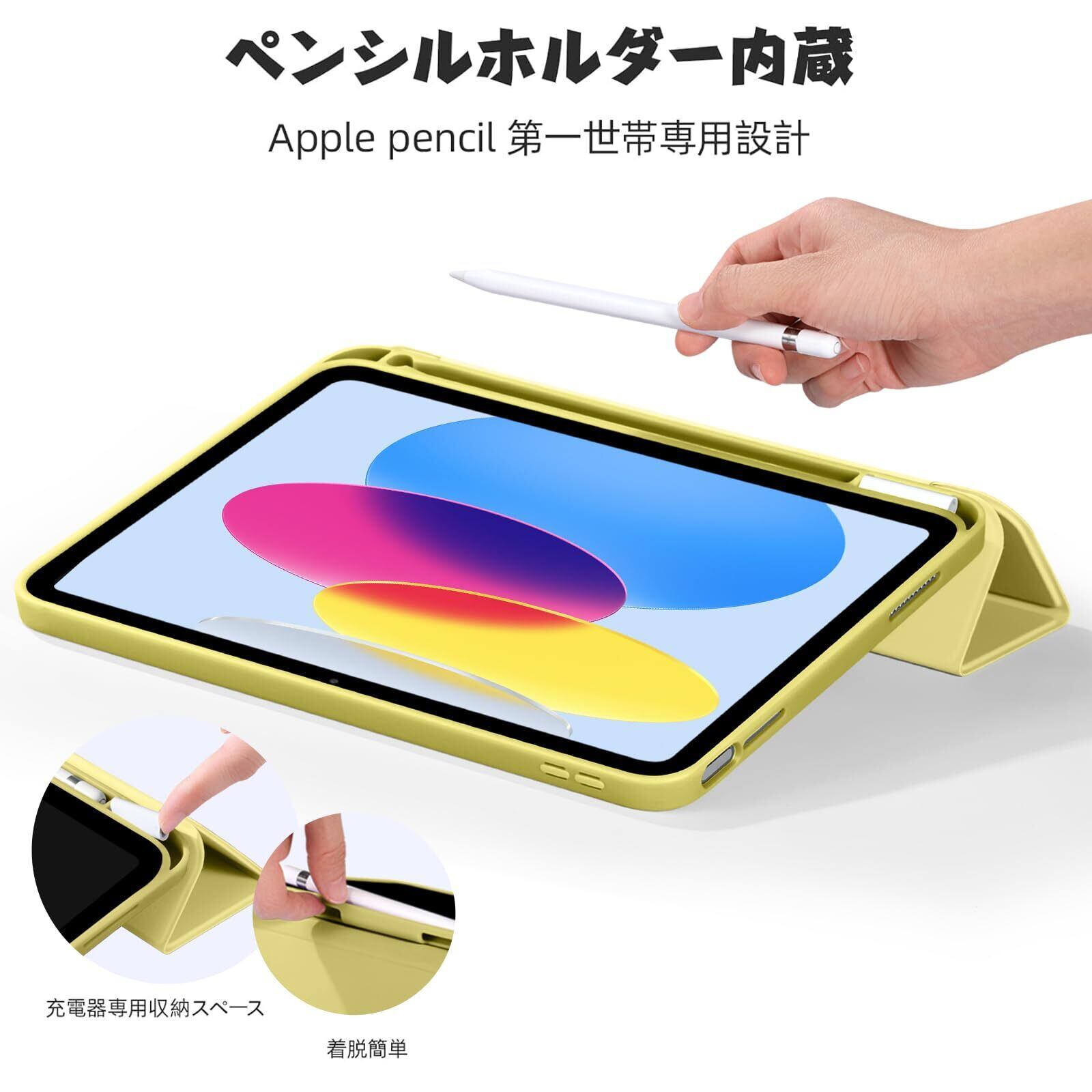 Maledan 対応iPad 11世代 ケース 2025モデル - 11/10.9インチ 三つ折りスタンド ペンシル収納ホルダー付き 軽薄 軽量 オートスリープ機能対応 耐衝撃 対応iPad 10世代 ケース イエロー