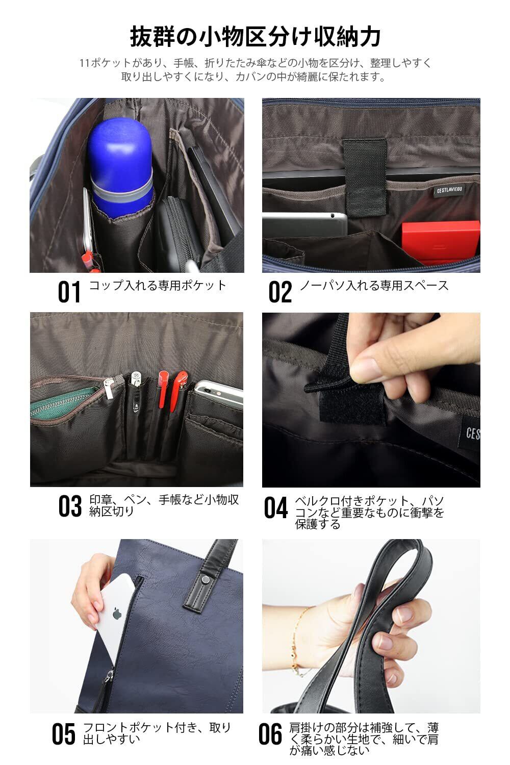 [Cestlaviegu] トートバッグ ビジネスバッグ メンズ レディース 大容量 防水 自立 大きめ PUレザー A4 13.3型PC収納 ビジネストートバッグ メンズ ファスナー付き 就活 通勤 通学 出張 旅行