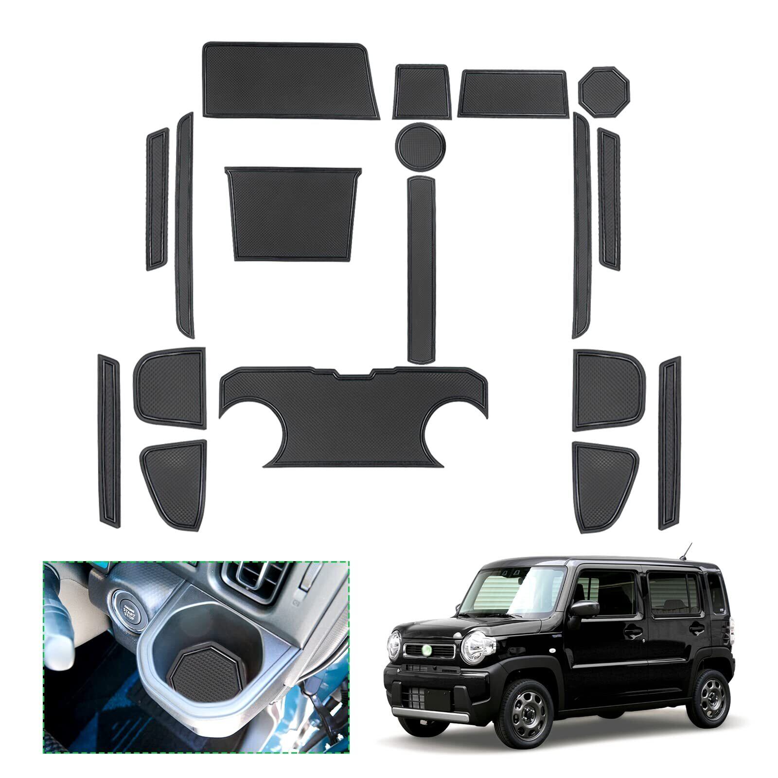 【実用性・滑り止め】ハスラー ラバーマットの表面に模様のデザインが加わり、摩擦力が増し、滑り止め効果が良好で、置いてあるものに対してクッション性が良くてと衝撃吸収の効果があります。スマートフォンや鍵などの小物を置くと、運転中のカタカタ音や収納ポケットの傷を防止します。