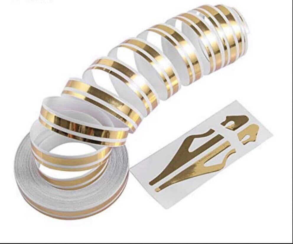 12 ミリメートルピンストライプピンストライプテープデカールビニール車のステッカー Steamline ホワイトゴールドシルバーダブルラインオートバイカースタイリングアクセサリー-gold