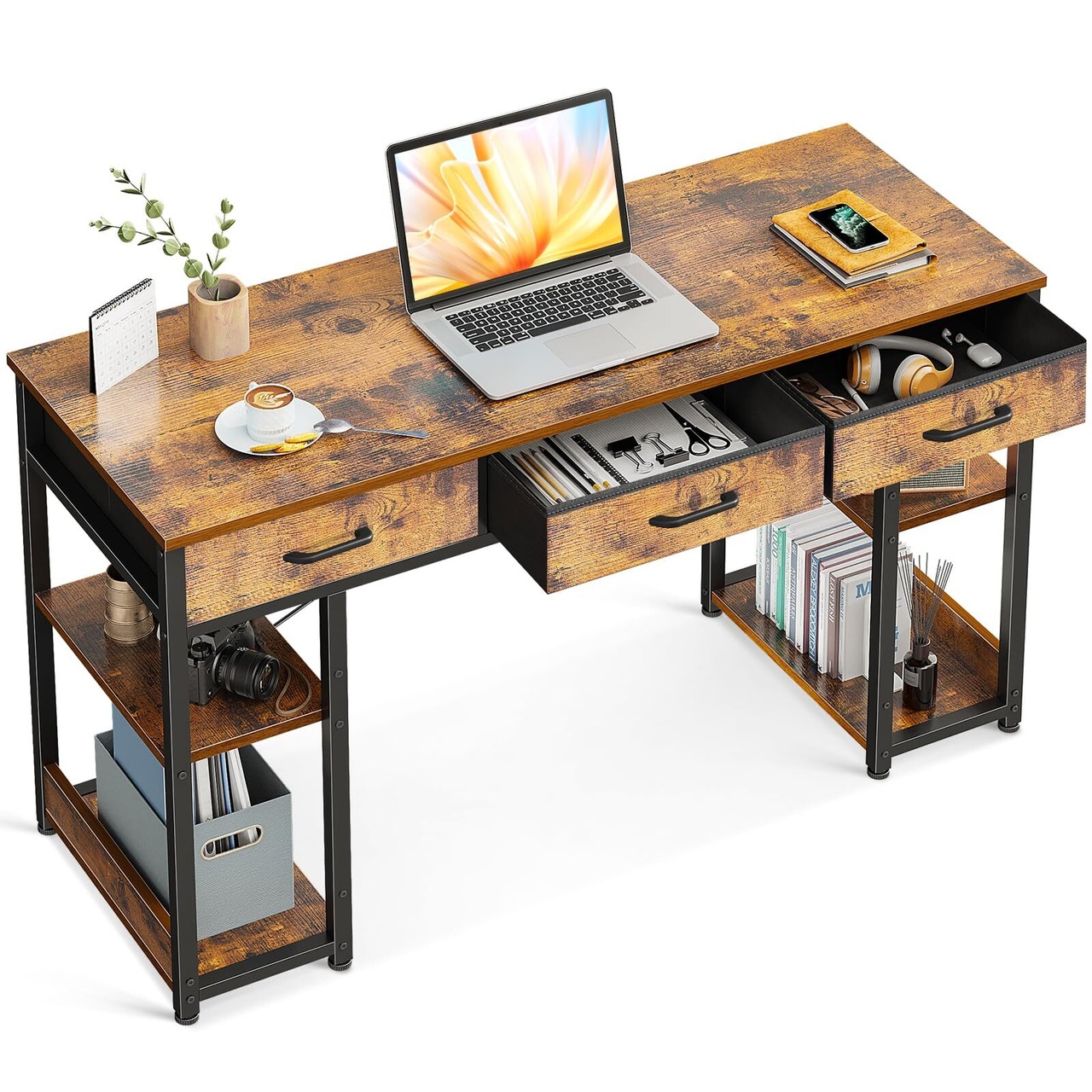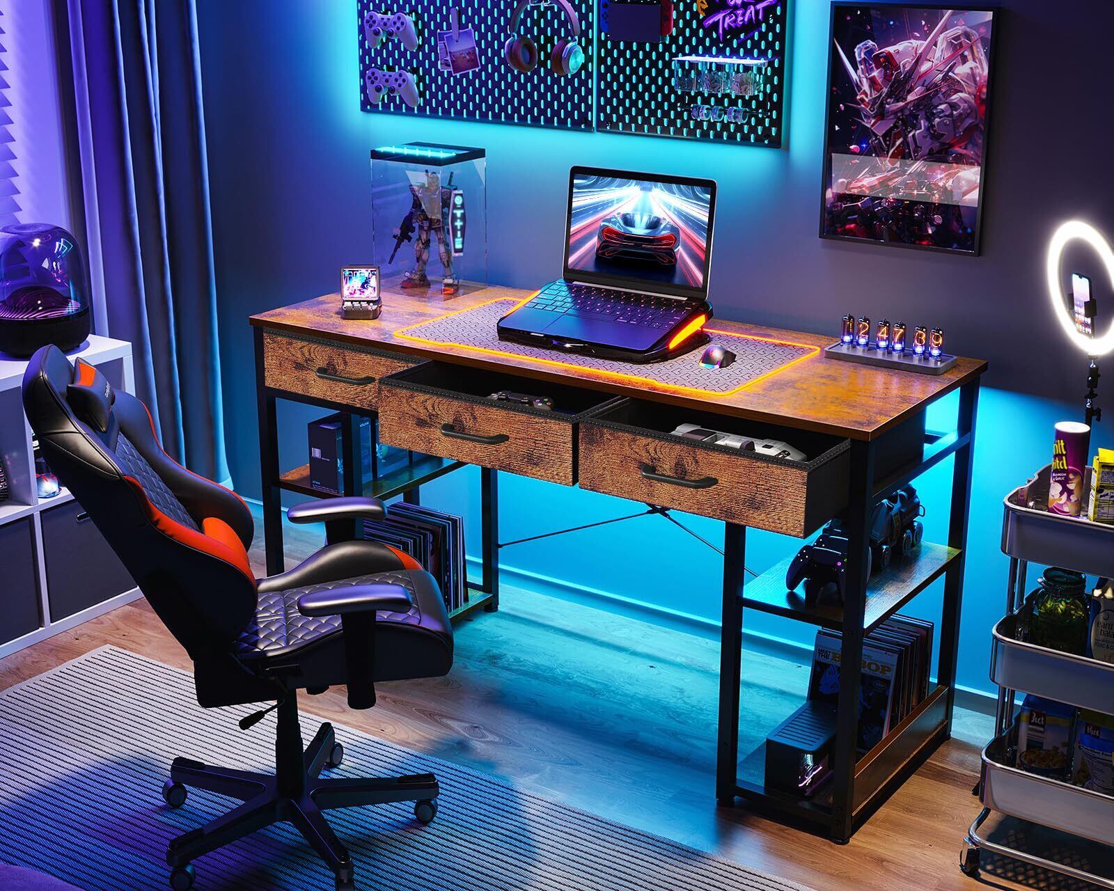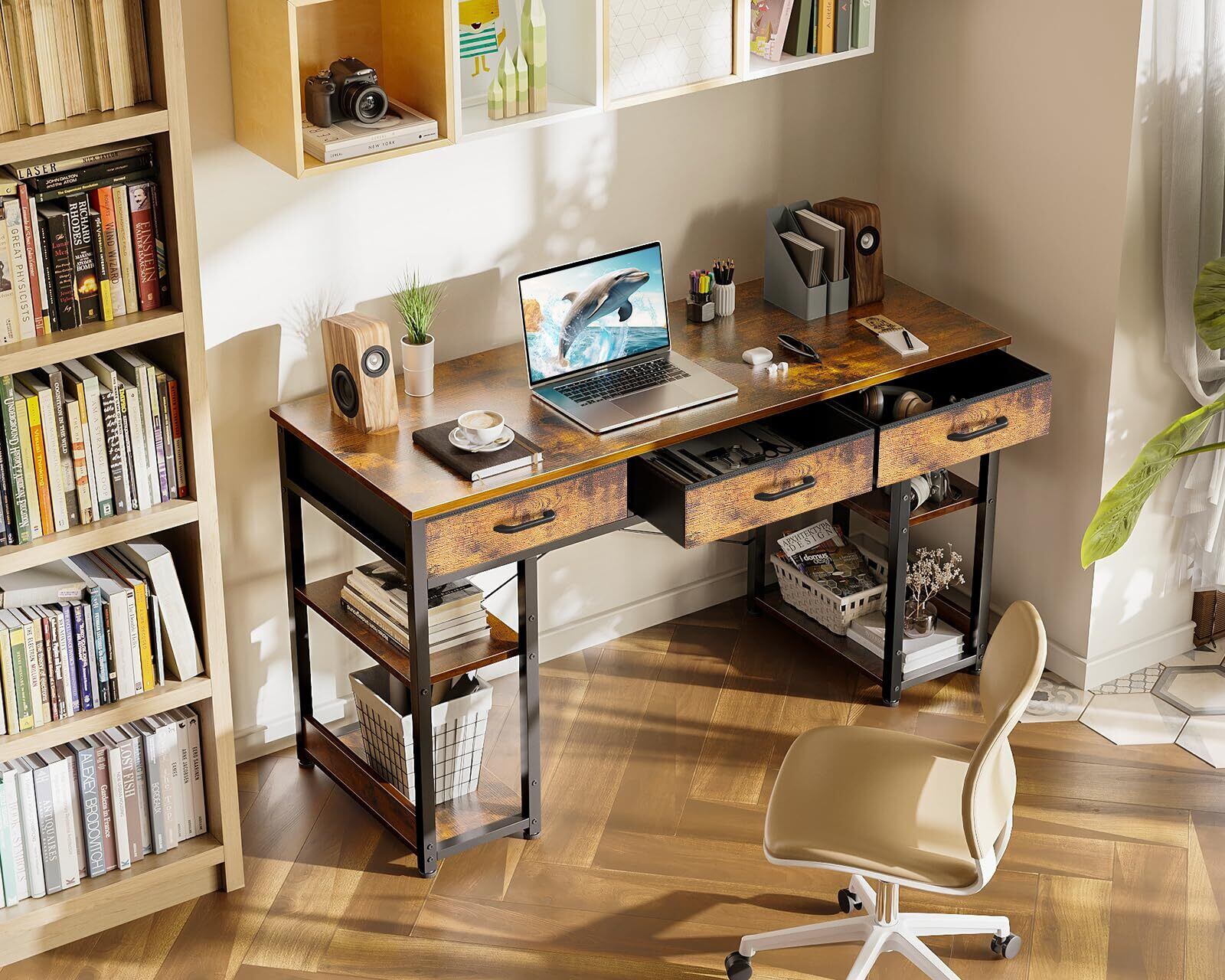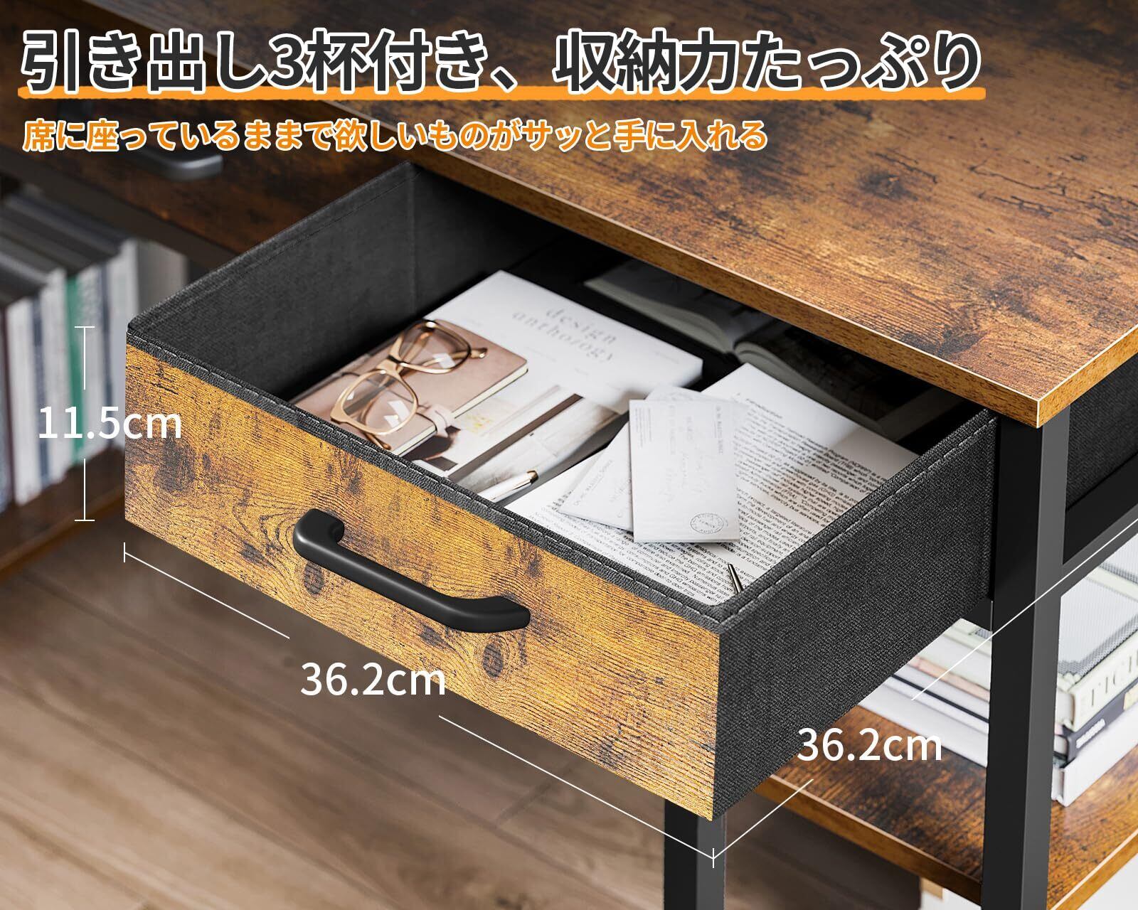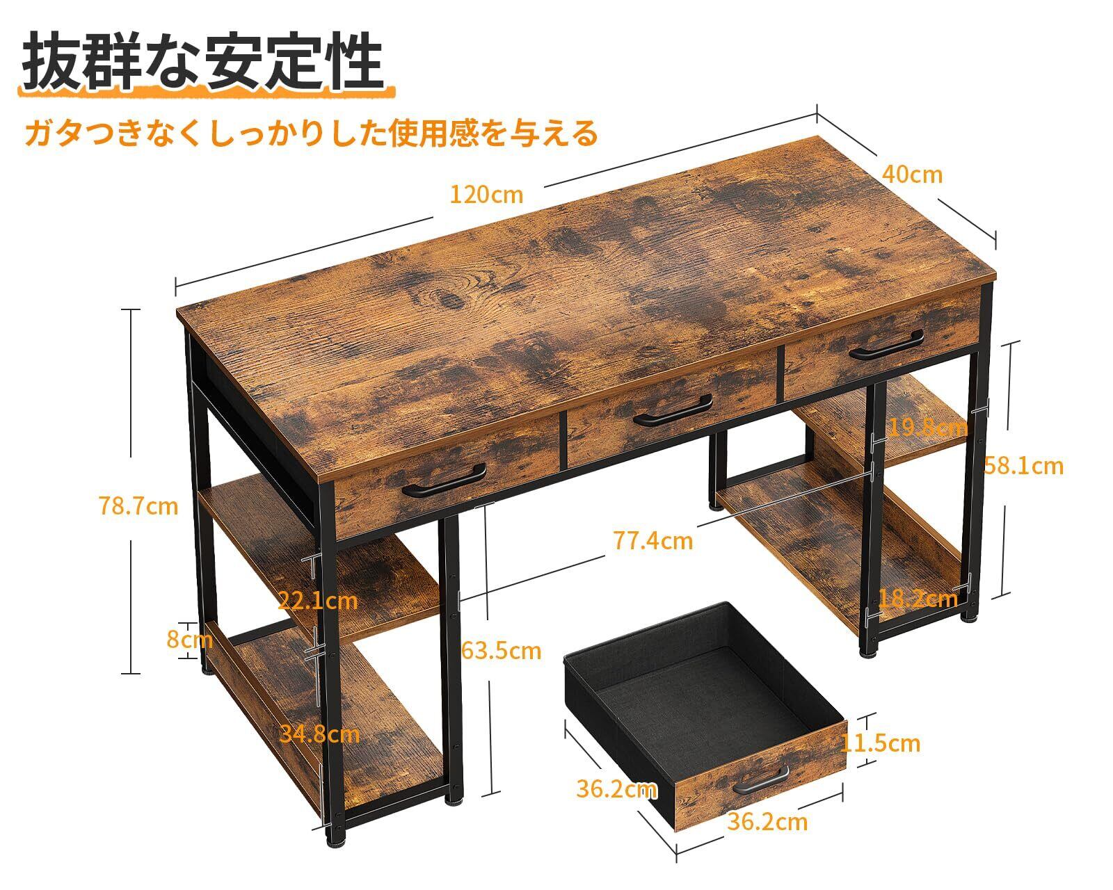 ODK 机 pcデスク パソコンデスク 幅120cm ゲーミングデスク 引き出し3杯付き ラック付きデスク 桌子 computer desk 勉強机 ワークデスク 电脑桌 スリムデスク おしゃれ テレワーク用 省スペース ビンテージ