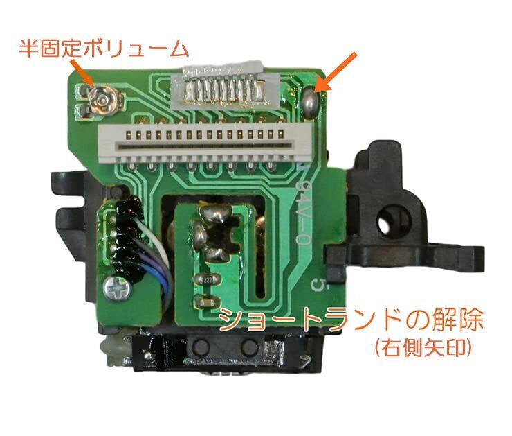使用に際しては、添付画像を参考にショートランドのハンダを除去してください。(除去しない場合正常に動作しません。)