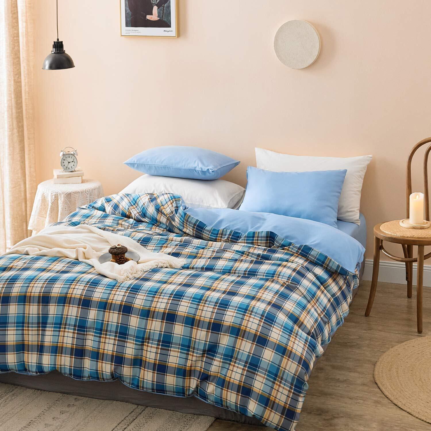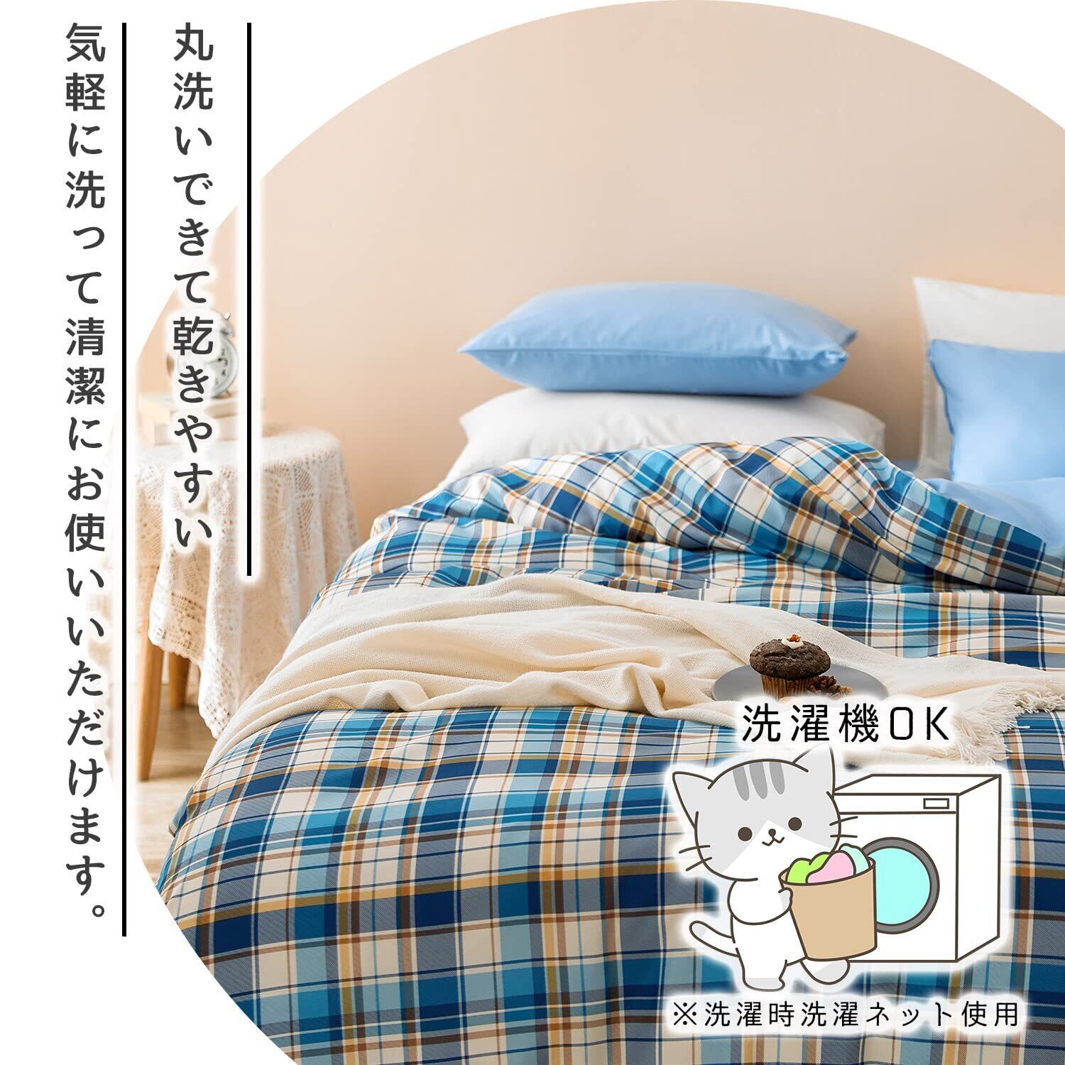 三幸 掛け布団カバー シングルロング チェック柄 ブルー 通年 全開ファスナー おしゃれ 448631-K023