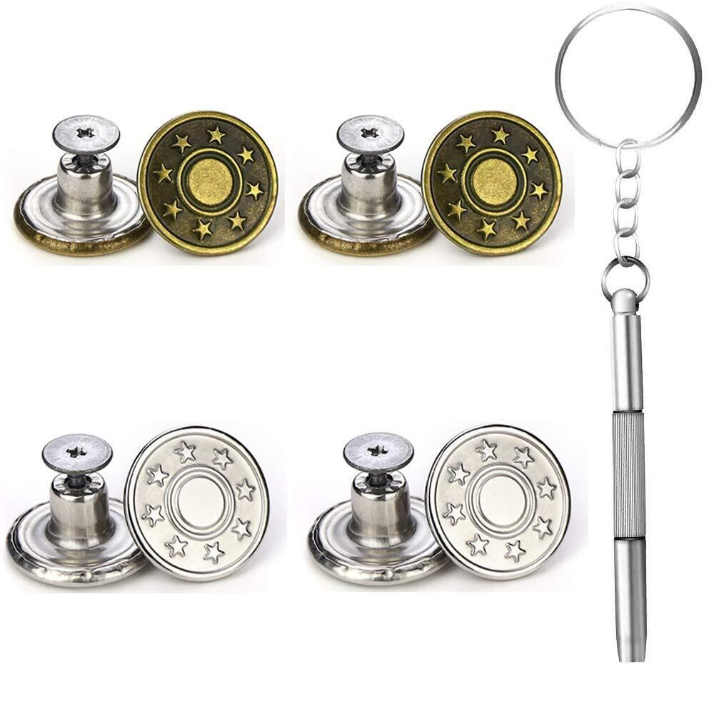 ジーンズボタン 17mm 4個セット デニムボタン ジーンズボタン ネジ式 ジーンズ用ボタン、バッグ 取付簡単 ウエスト調整 DIY 裁縫 手作り 飾りボタン 交換 金属製 錆びにくい
