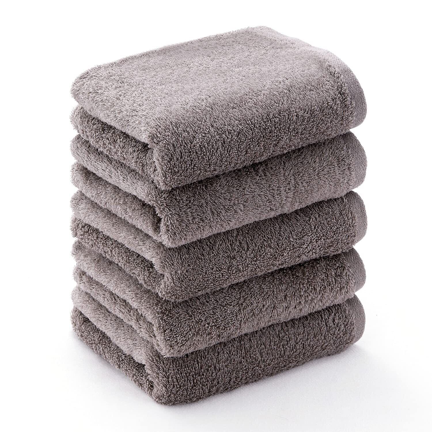 タオルファクトリーラボ ふんわり 吸収 フェイスタオル 5枚セット [エアリー] グレー 軽い 薄手 プチプラタオル 002 約34×80cm