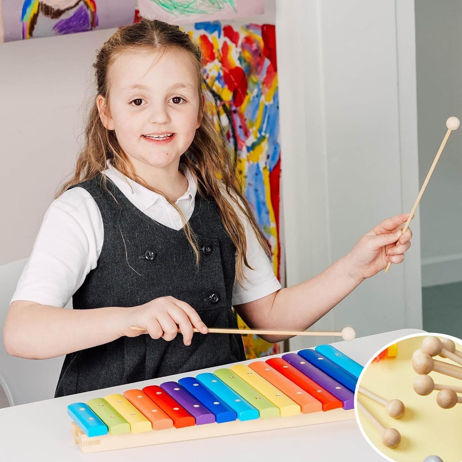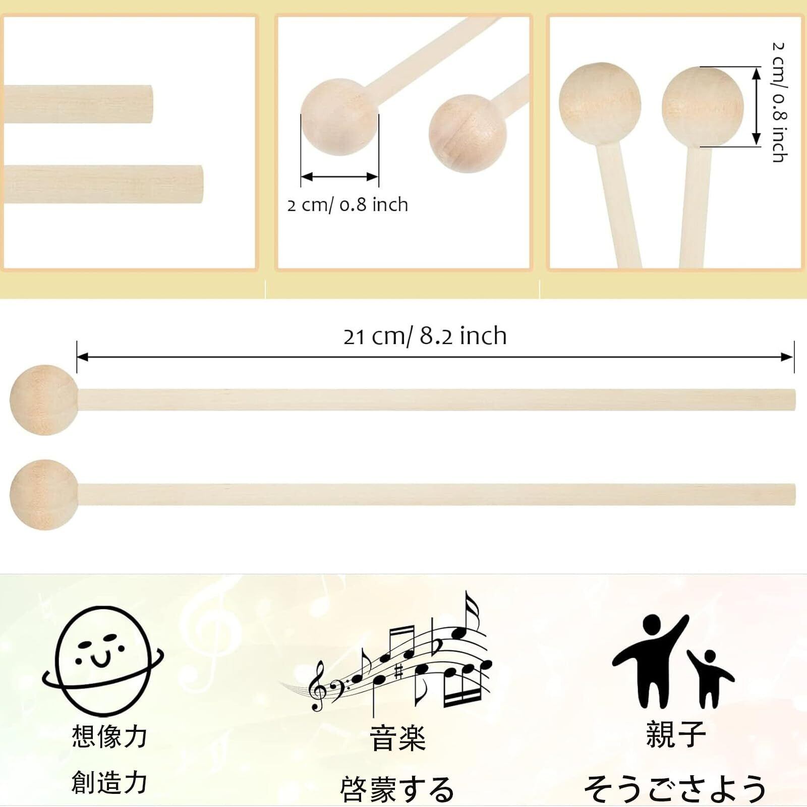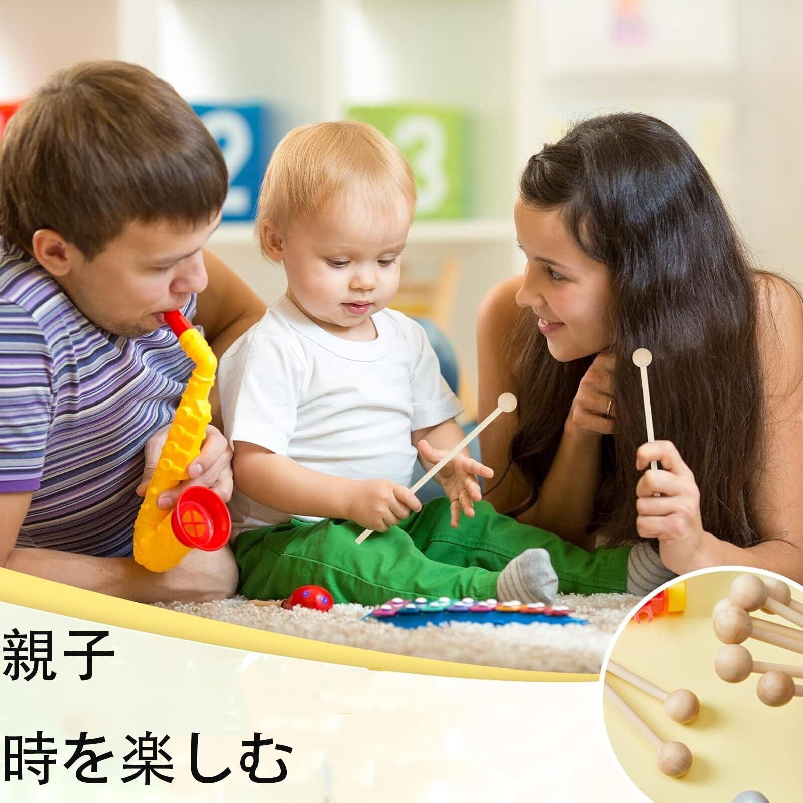 【絶妙な職人技】絶妙な職人技で、このパーカッションおもちゃは美しい音を生み出します。丸くてバリや鋭い角がないように設計されたこの木琴バチは、幼児でも安全に使用できます。