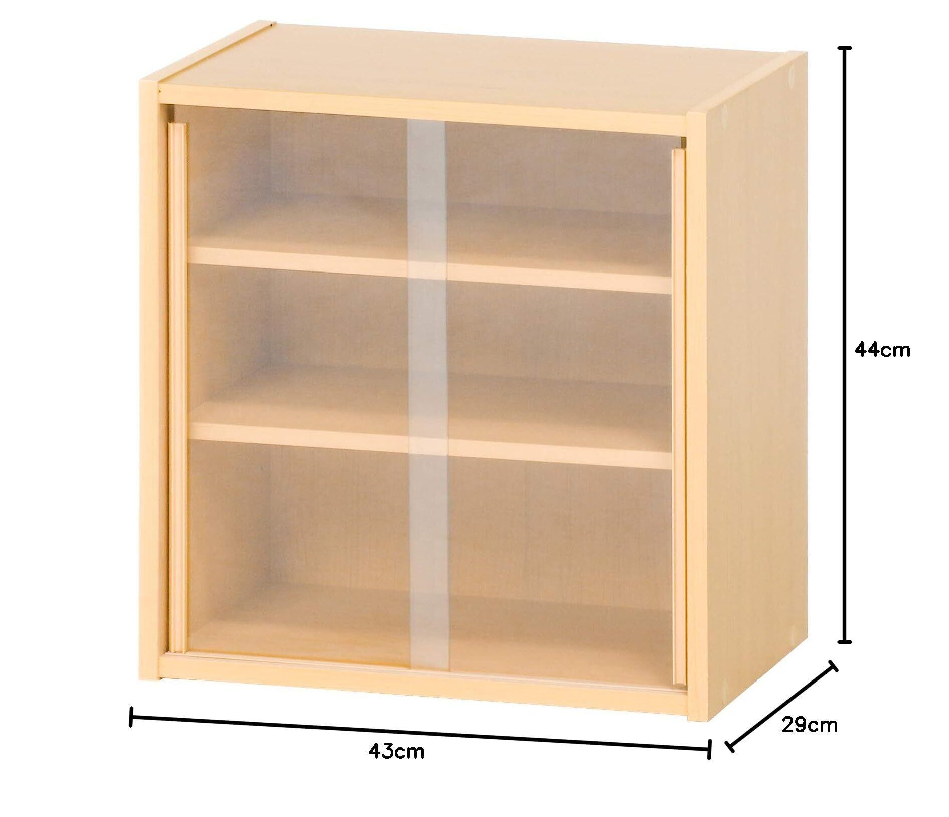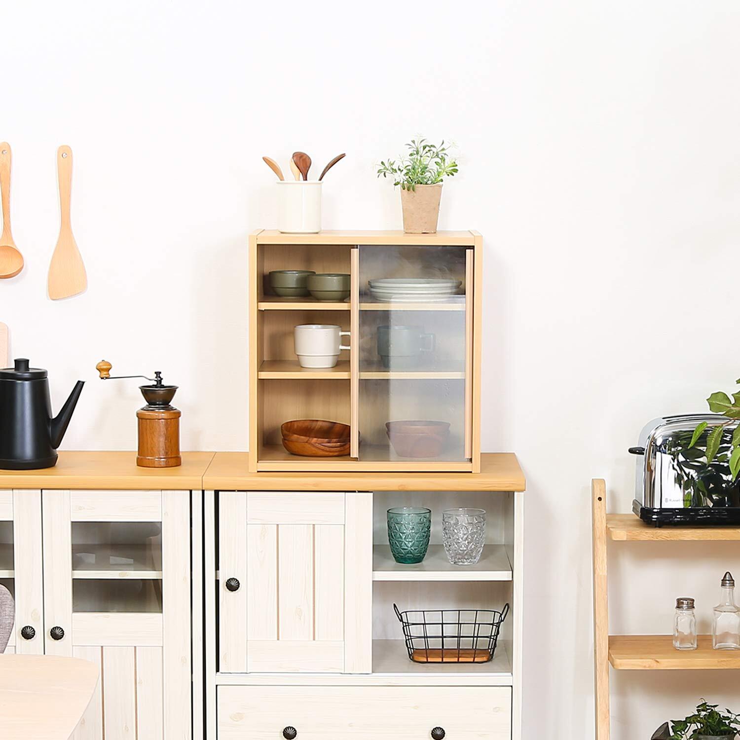 不二貿易 食器棚 キッチン収納 幅43×奥行29×高さ44cm ナチュラル ガラス扉 可動棚 組立品 81908