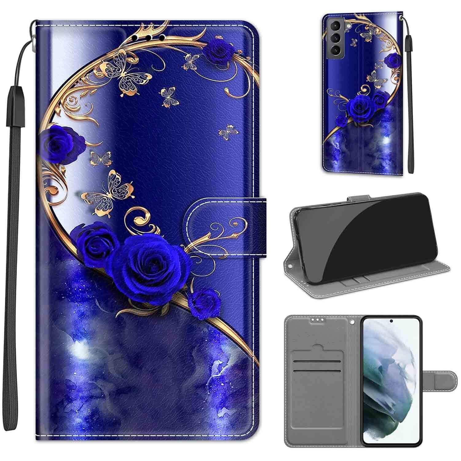 KENHONER Galaxy S22 ケース手帳型 SC-51C SCG13 ケース サムスン ギャラクシーS22 手帳型ケース 携帯ケース カバー スマホケース 手帳型ケース 携帯カバー 財布型 Sumsung galaxy s22 case スタンド機能 耐衝撃 全面保護 薄型 耐摩擦 可愛い (Samsung Galaxy S22 SC-51C SCG13 対応) バラの蝶