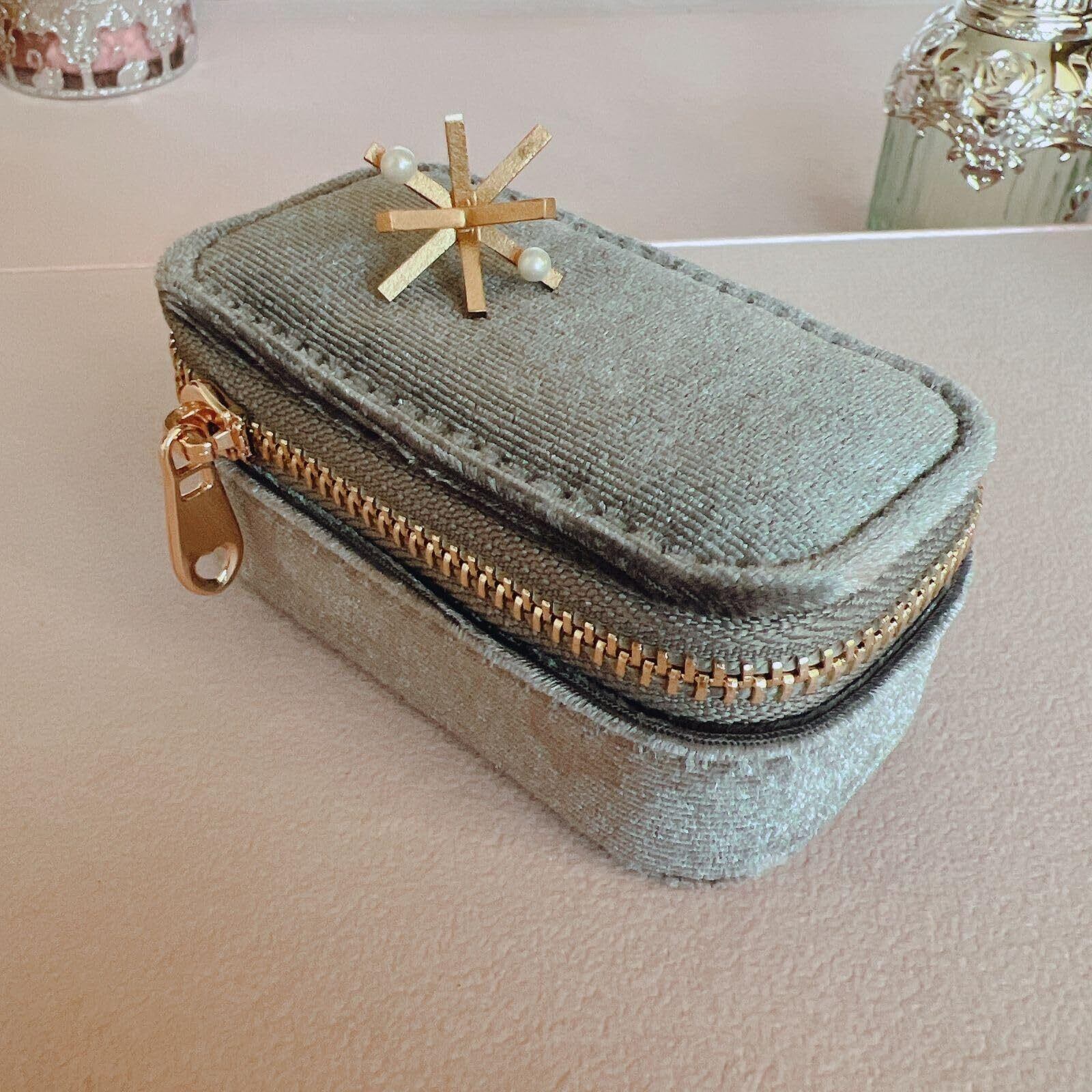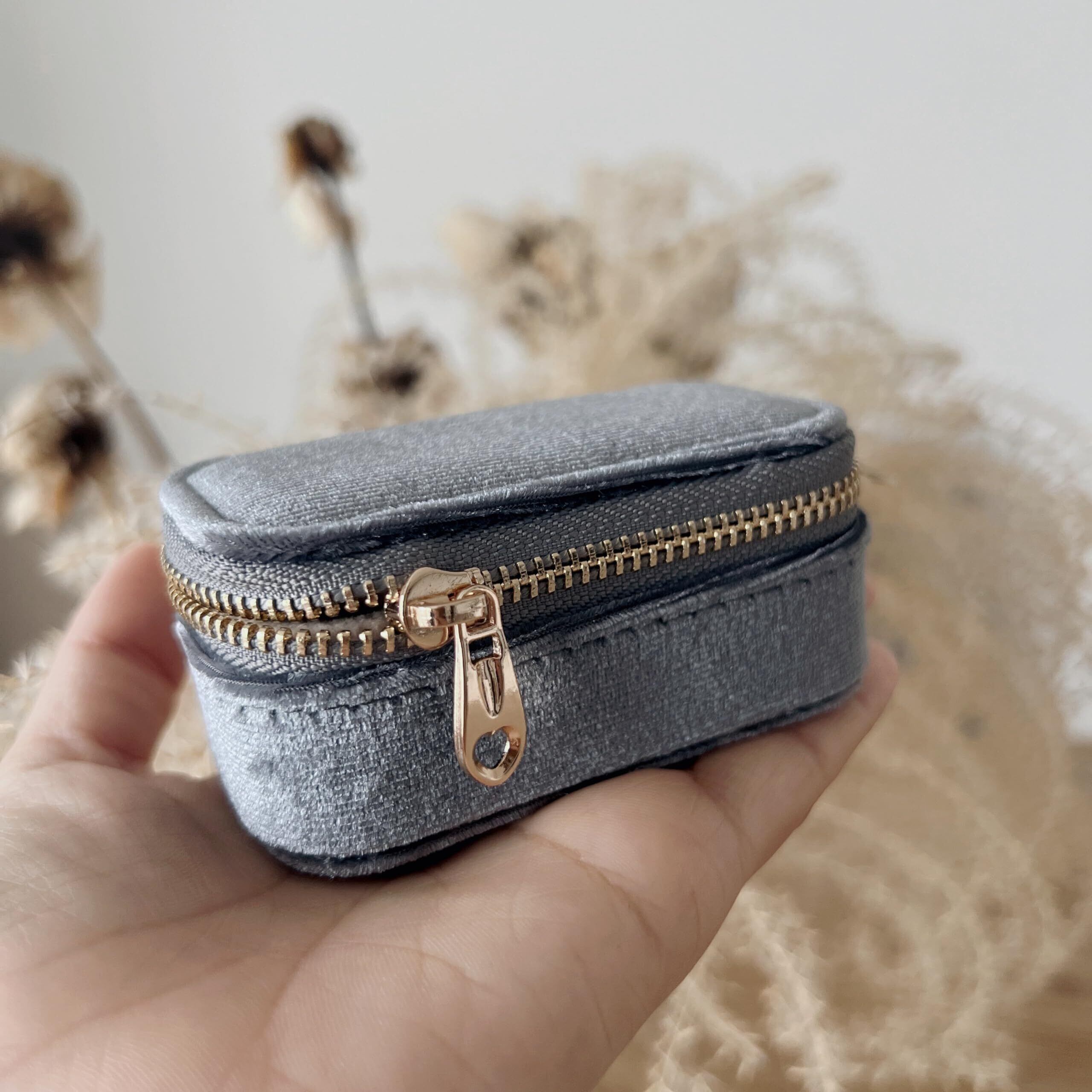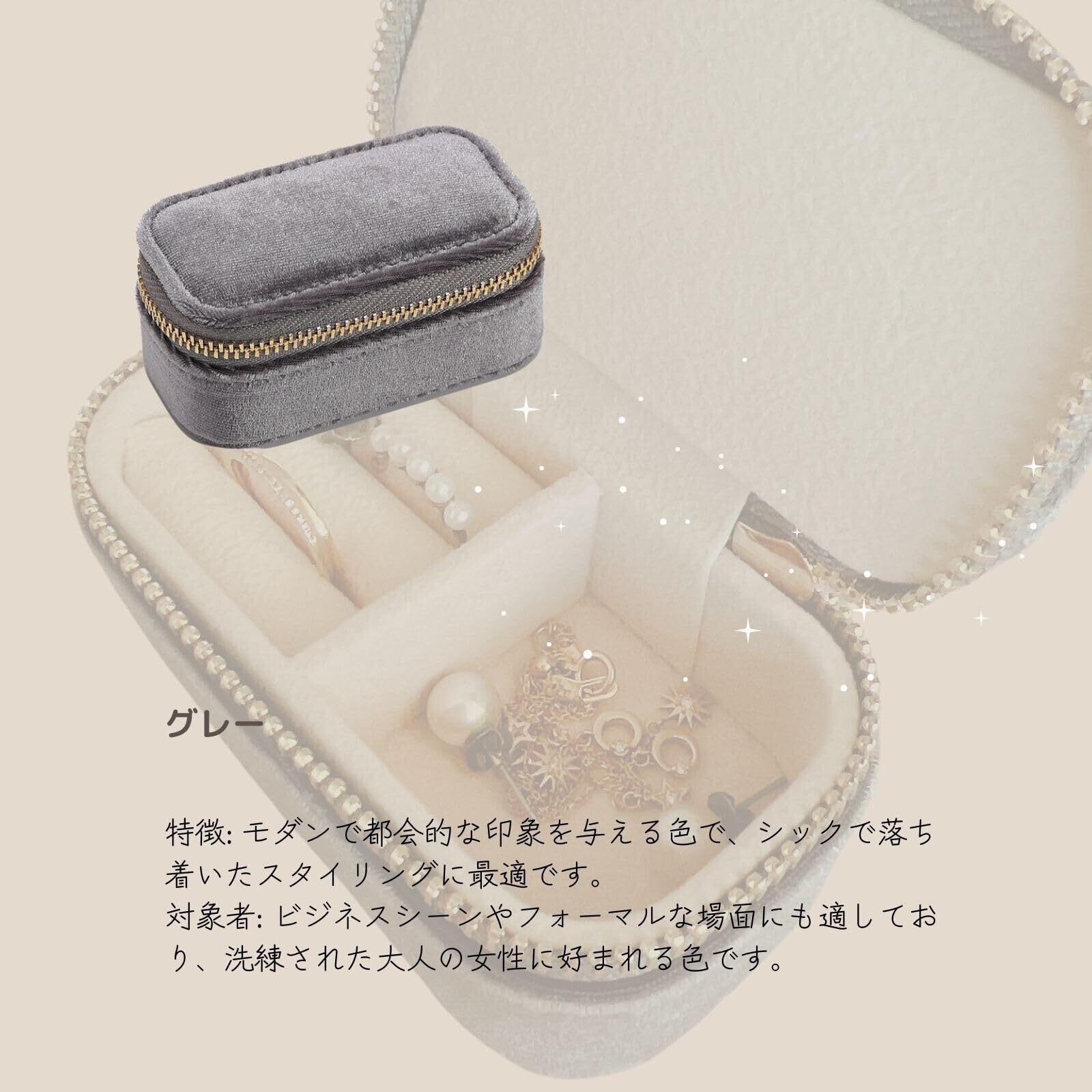 demi lous.ジュエリーケース ポータブル 持ち運べる アクセサリー収納 小さい 持ち運び 旅行用 小物入れ ミニサイズ アクセサリーケース ファスナー付 ミニポーチ ポータブル (グレー)
