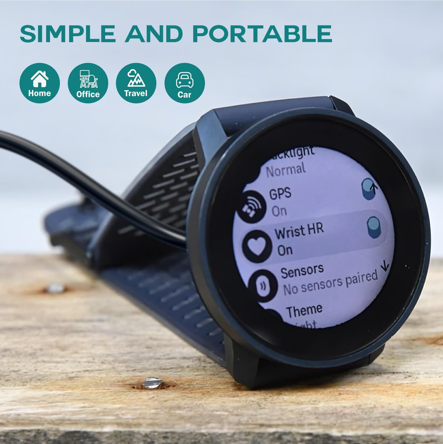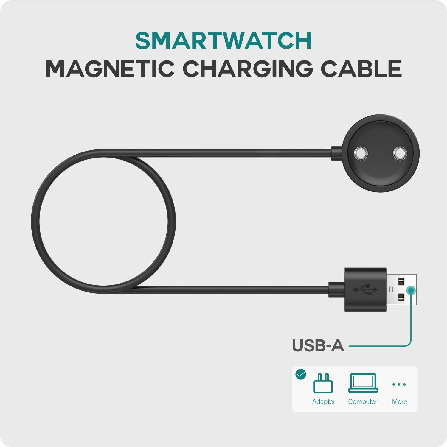このUSB 2.0ケーブルは、スマートウォッチをコンピューターのUSBポートに接続して充電します。 または、コンセントからの充電に便利なUSB電源アダプターに接続することもできます。