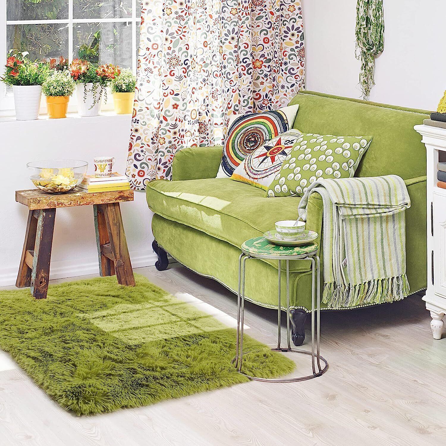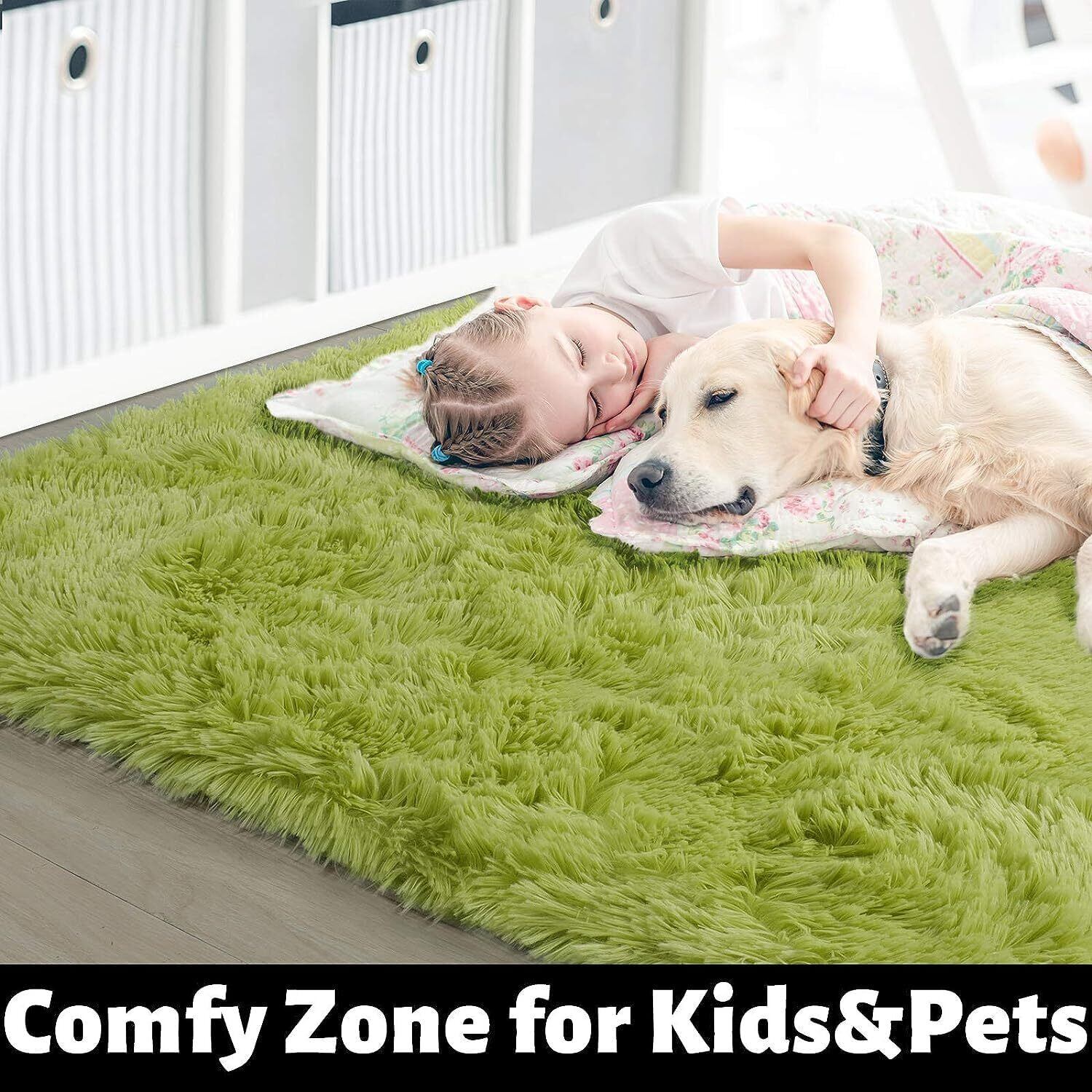 CLYLIFE 北欧風シャギーラグ 洗える&滑り止め付 防音・抗菌・防ダニ・防臭 床暖房対応 オールシーズン快適 使用全厚4cm 冬季冷暖房対策に極厚 (Grass green, 130×185cm)