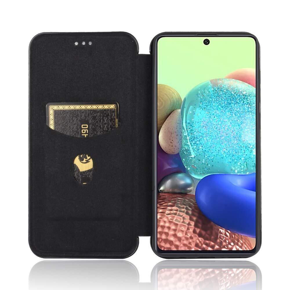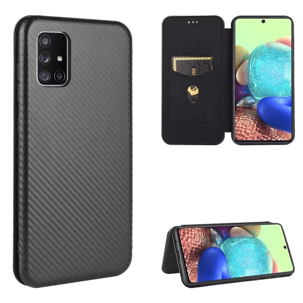 【Dingxin】 Galaxy A51 5G ケース 手帳型 薄型 炭素繊維調 galaxy a51 5g scg07 sc-54a財布型 マグネット式 カード収納あり ストラップホール ストラップ付 ギャラクシー A51 5G ケース カバー 全面保護 耐衝撃 (Galaxy A51 5G, ブラック)