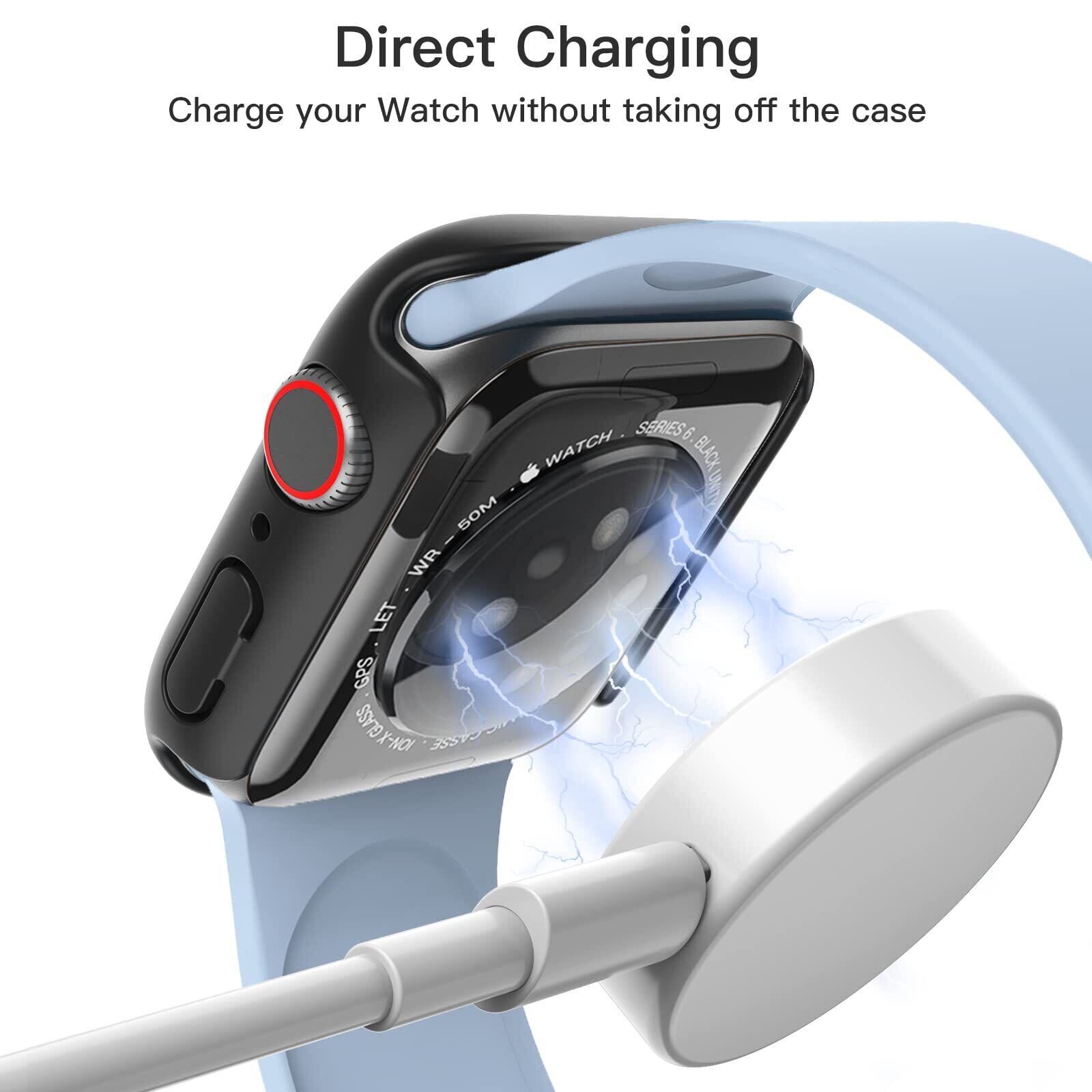 JEDirect Apple Watch SE (2022/2020) /Series 6 5 4(44 mm用)ケース フィルム付き アップルウォッチ 全面保護カバー 強化ガラスフィルム内蔵 高感度 2個セット (ブラック)