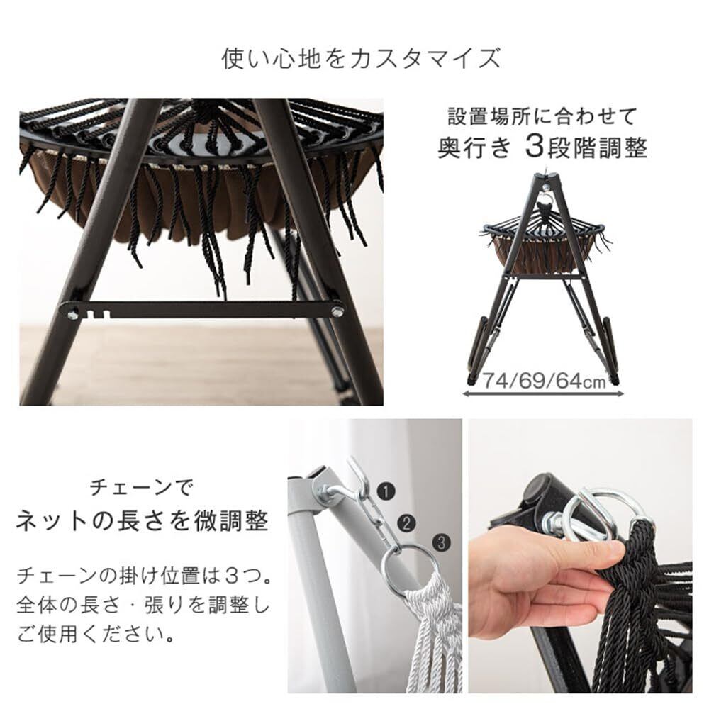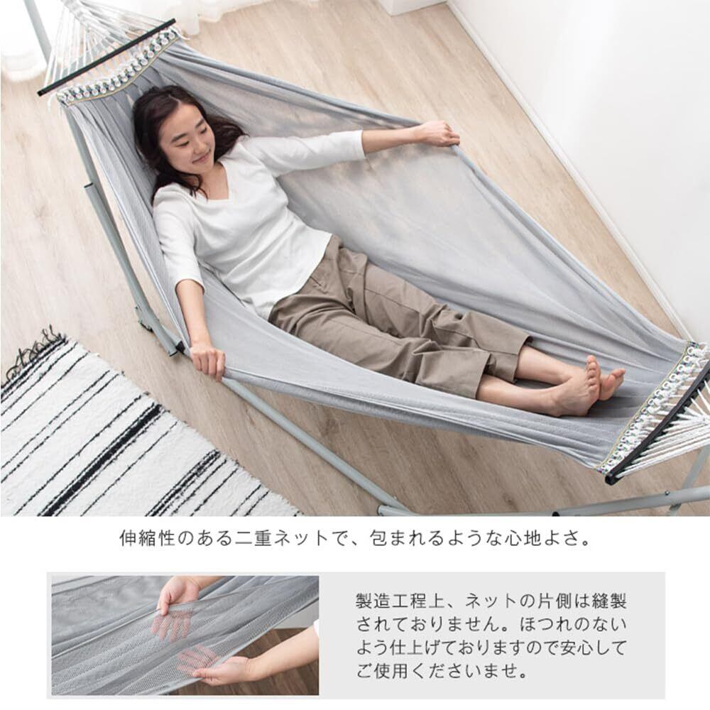 タンスのゲン ハンモック 自立式 耐荷重225kg 室内 屋外 野外 グレー 24610043 27 (77205)