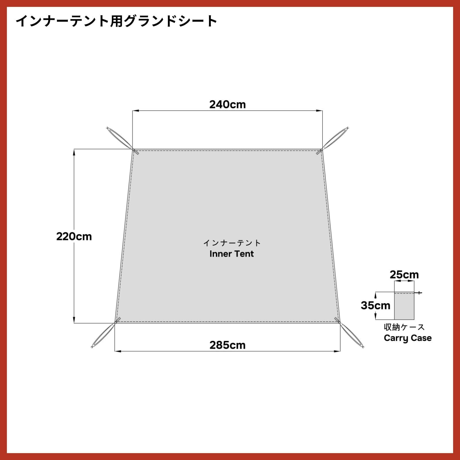 【2 つのサイズをご用意 】【インナーテント用グランドシート】インナーテント部分を覆う。 【全面用グランドシート】インナーテント用と前室部分を覆える特殊形状となっており、荷物を置きとしても便利な形状です。