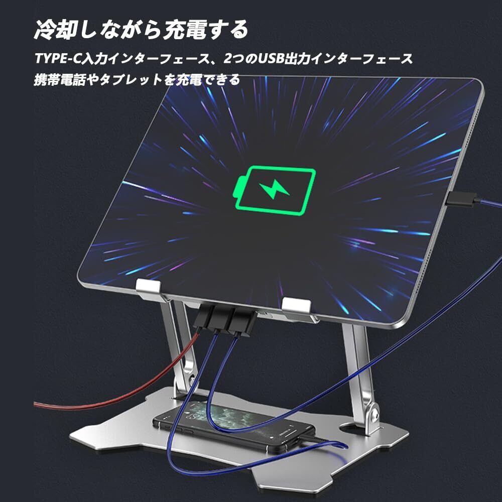 ipad 冷却スタンド 充電中の冷却:TYPE-C入力インターフェース、2つのUSB出力インターフェース、冷却ファンに電力を供給し、タブレットやスマートフォンなどの周辺機器を接続できます。 自宅、オフィス、出張先などでもお使いいただけます。