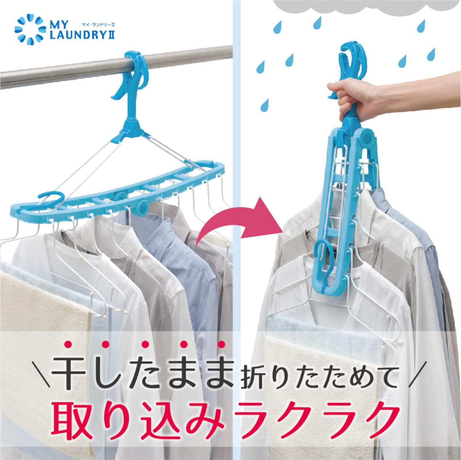 ●干したまま折りたたんで取り込め、収納時にも場所を取りません。