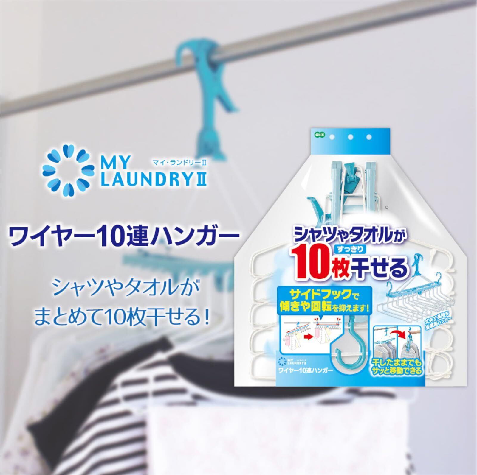 洗濯 物干し ハンガー マイランドリー2 ワイヤー ブルー 10連ハンガー 傾かず 干せる