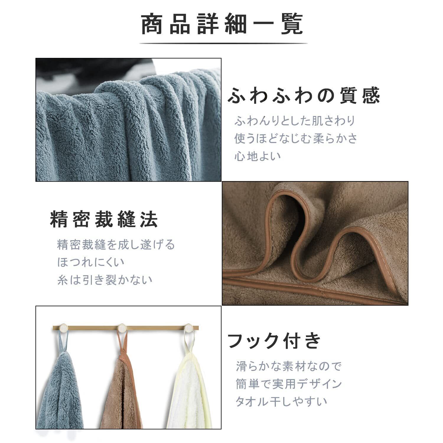 【抜群な吸水力】マイクロファイバーで作られていますので、吸水力は綿より3倍以上優れるところは誇りになる性能を持つ。繊維に多くの隙間があり、直径8マイクロメートル以下、髪の毛の100分の1以下という細さで素早く水を吸収します。なめらかな手触りと吸水性能と速乾性能の速さがかがやくポイント。身体を包み込むように羽織るだけでしっかり吸水します。