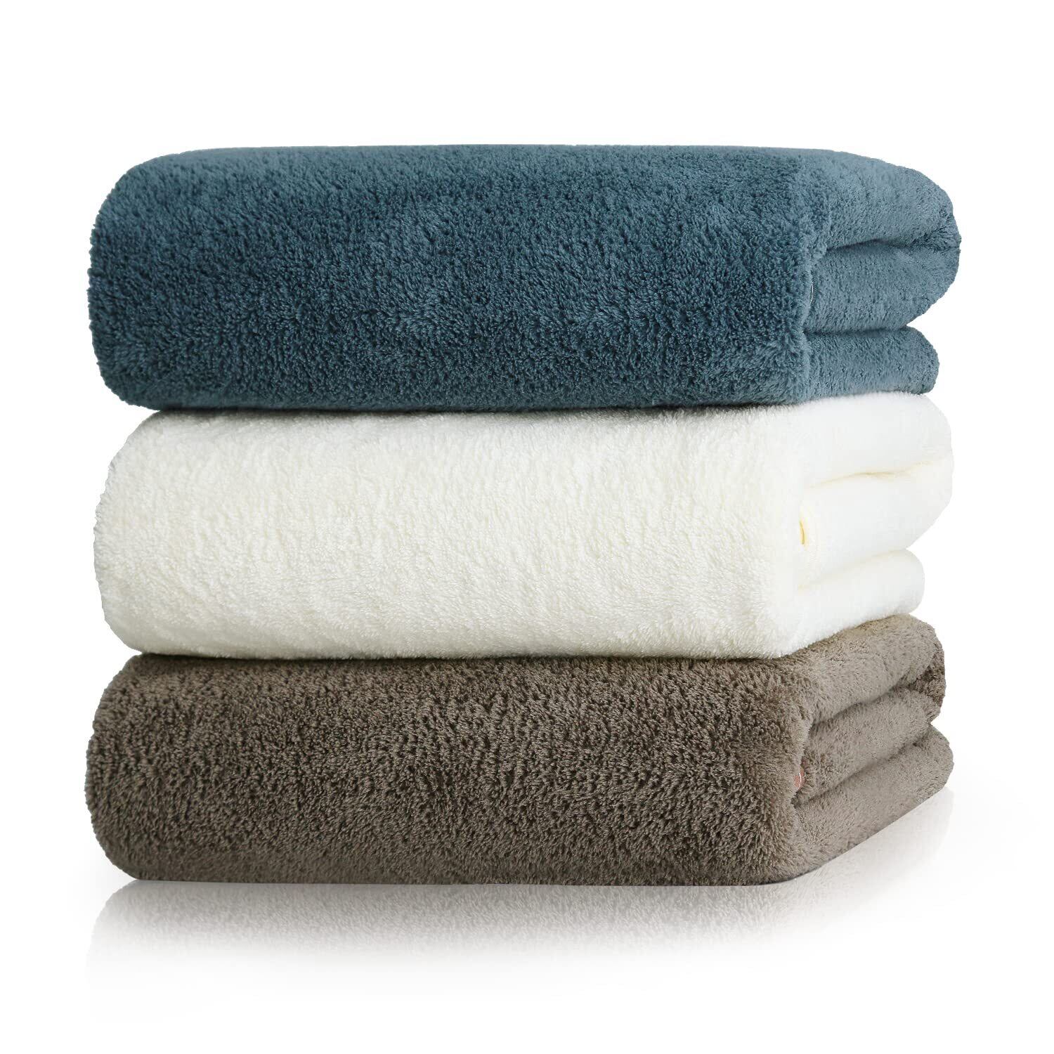 Etech バスタオル マイクロファイバー ホテル仕様 大判 70*140cm タオル 3枚セット 高速吸水 速乾 耐久性 ふわふわ 柔らかい 肌触り (コーヒー+ブルー+ホワイト)