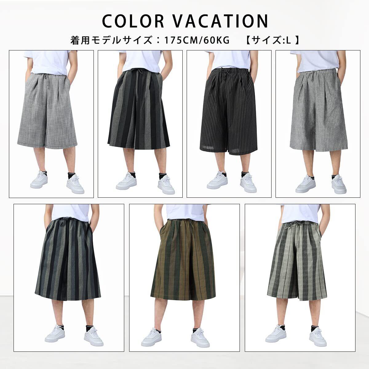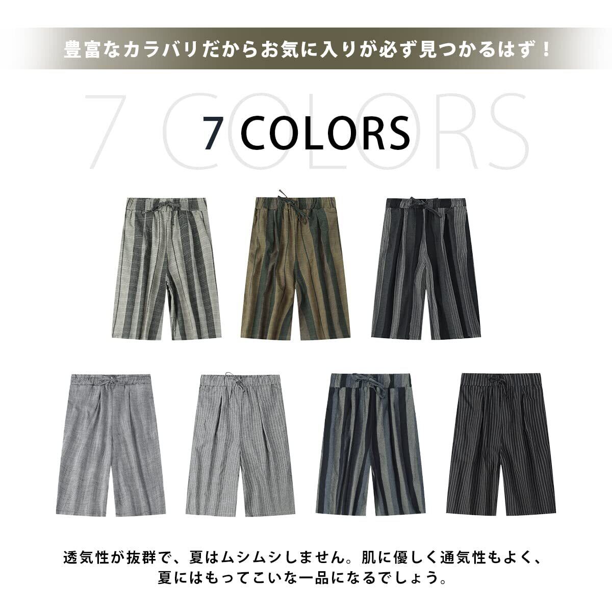 [CEEN] サルエルパンツ 七分丈 メンズ 綿麻 リネン ストライプ柄 ワイドパンツ 夏服 幅広ゴム 調整紐 快適 部屋着 ガウチョパンツ ハーフパンツ ゆったり 夏ワイドパンツ