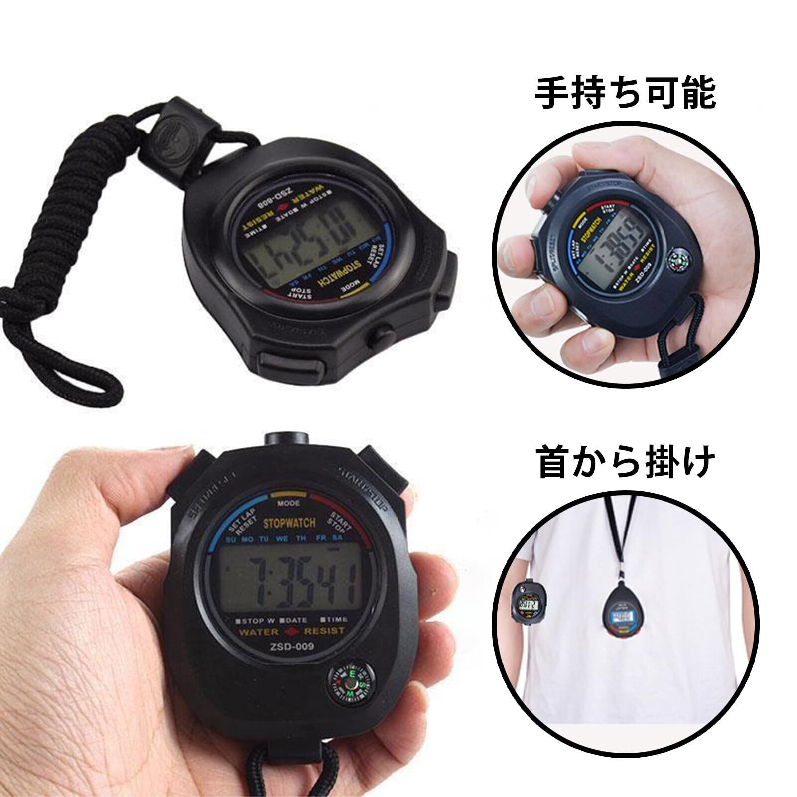 aninako ストップウォッチ スポーツ デジタル 時計 タイマー 防水 高精度 ストップ ウォッチ 審判とトレーニング コーチのため 2つの日付表示機能 ストラップとバッテリー付き (1)