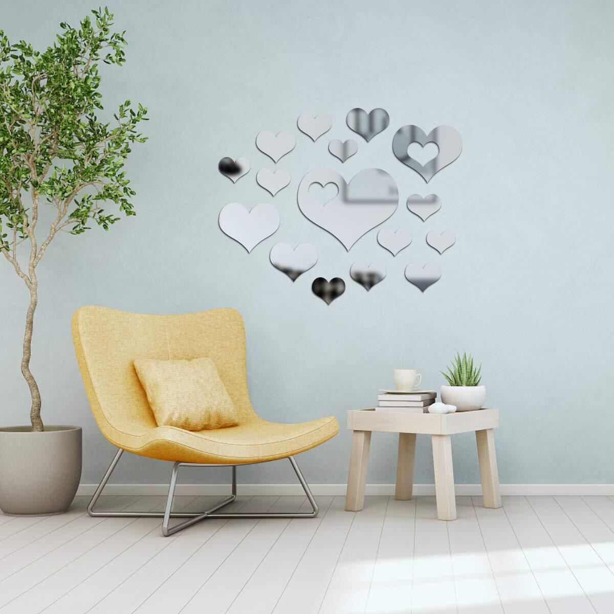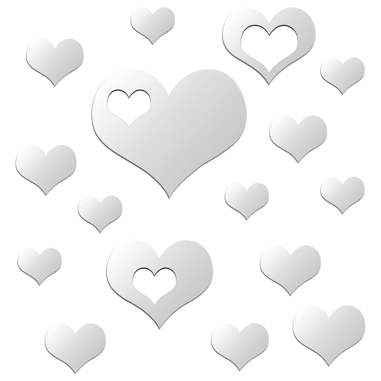 これらのハート型のミラーウォールステッカーは、反射面と背面自体に接着剤が付いたアクリル製です。