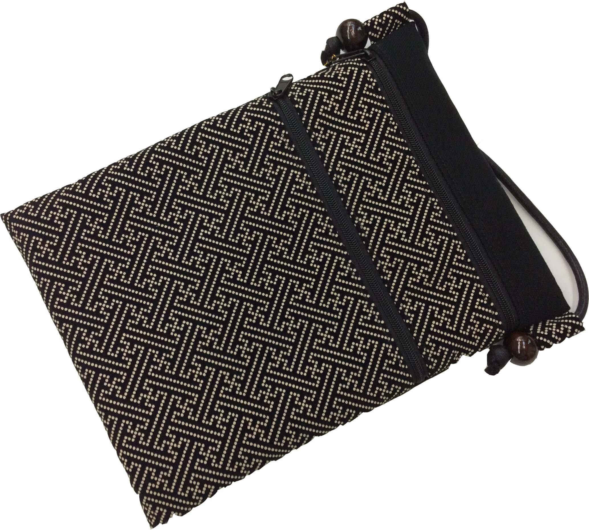 普段のお出掛けに使える和柄ポシェット。 男女兼用で使用可能です。 開口部はファスナーでポケット2つ付いています。 裏生地の色目:黒 紗彩形とは、「不断長久」を意味する吉祥文様です。別名『繋ぎ文』