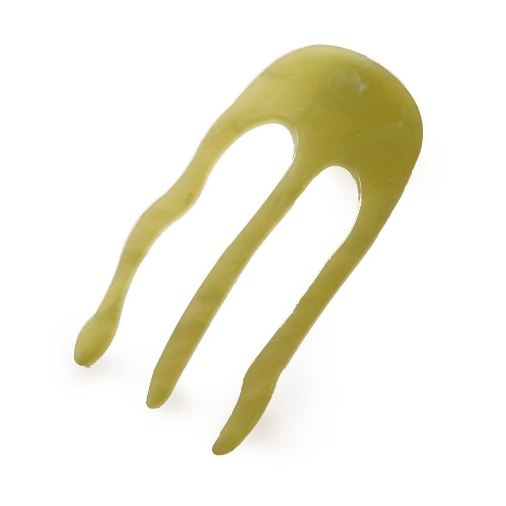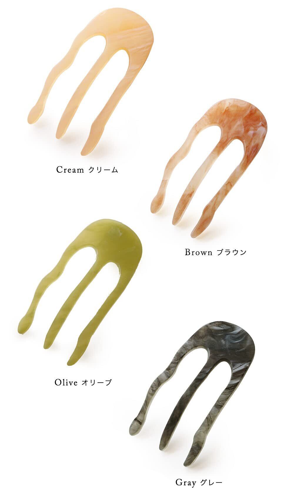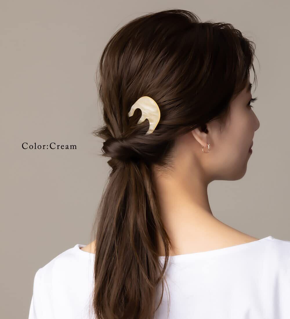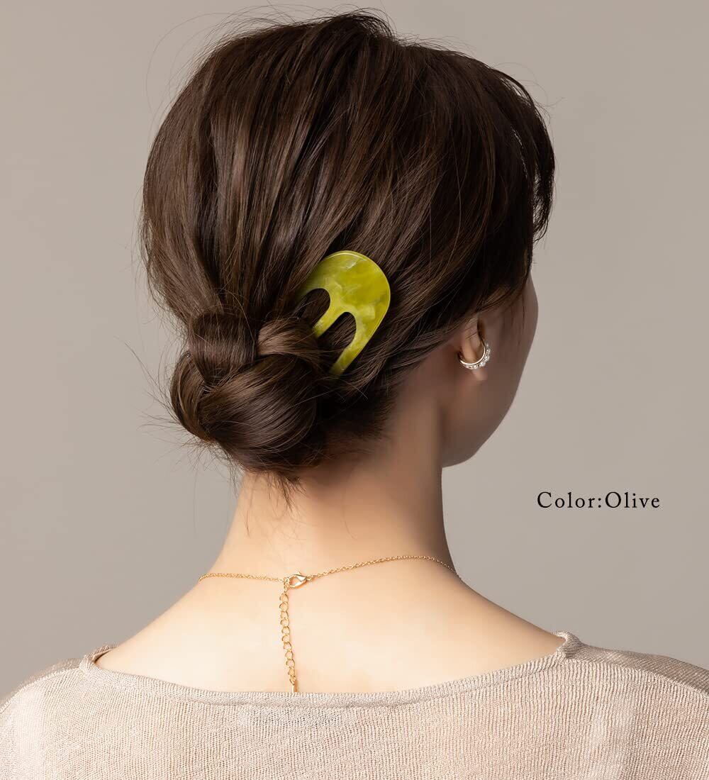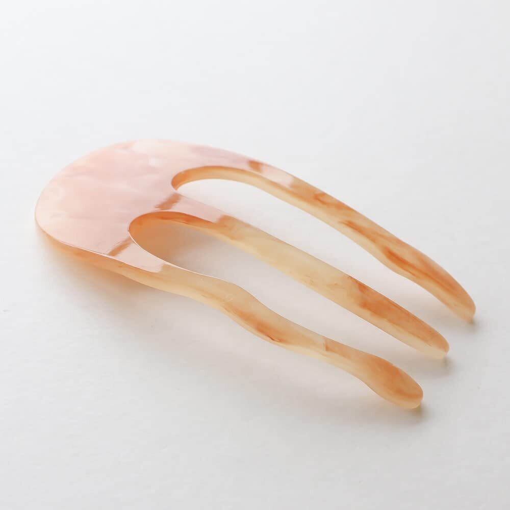 存在感はありつつも取り入れやすい絶妙な色合いのヘアコームは、 束ねた髪に挿すだけで簡単にこなれ感のある旬なヘアスタイルに。 違うカラーや他のアクセサリーと組み合わせて使うのにもおすすめのアイテムです。