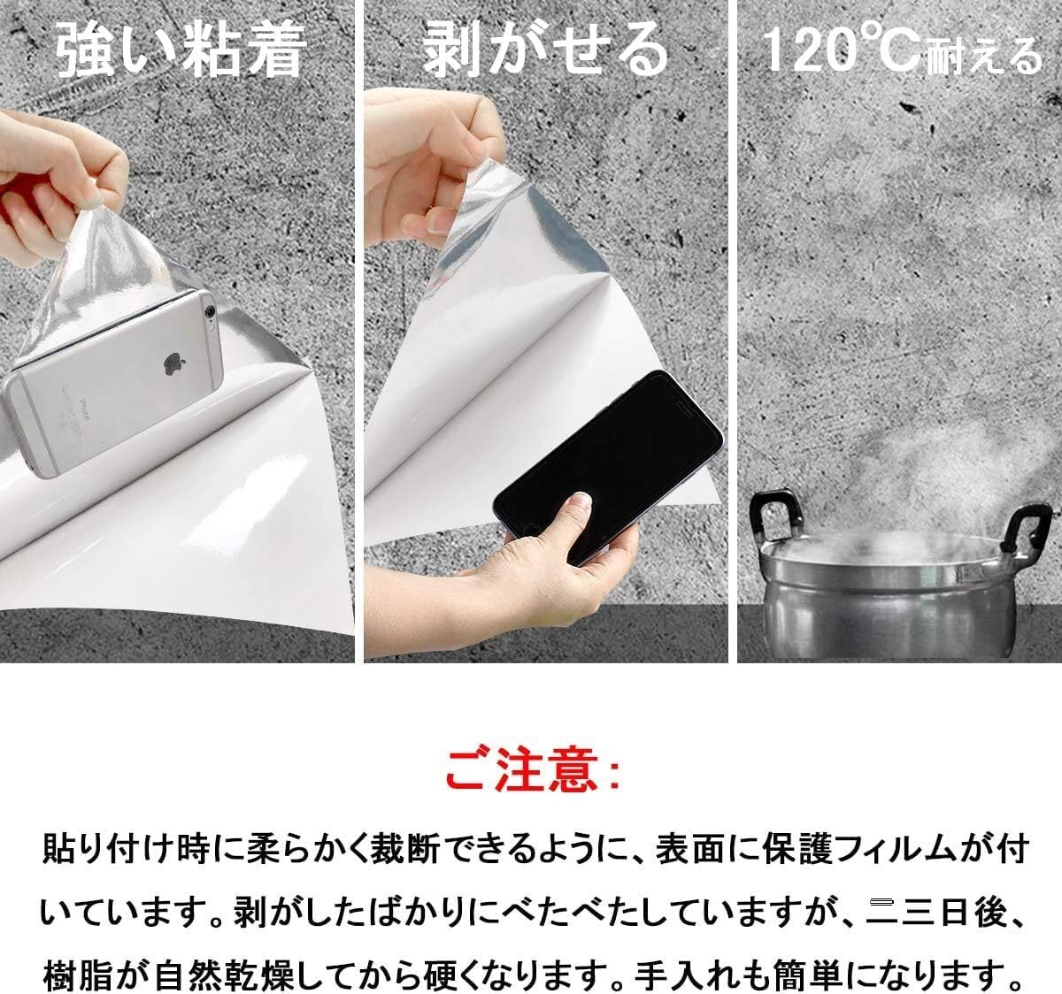 貼り付けも簡単で、接着材や目地材は不要です、台紙から剥がしてそのまま貼り付け出来ます。防水性、防汚性にも優れ、お手入れは濡れタオルで拭き取るだけです。キッチン周りで気になる油汚れや、日常のほこりも簡単にお手入れ出来ます。