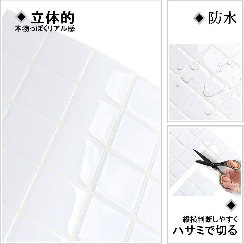 APSOONSELL タイルシール 白 【4枚セット】 防水 耐熱 キッチン 風呂 トイレ レンガタイル 壁紙シール はがせる 立体 ウォールステッカー DIY キッチン 壁紙 タイルシート 賃貸 簡単取付