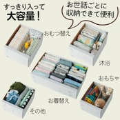ちょうどいい高さ設計や仕切り板で整頓しやすく、重ねないで立てて収納することで、グッズの迷子防止に役立ちます。 物を探す時間を短縮して、育児に余裕をもたせたいおうちのかたにうれしい収納です。