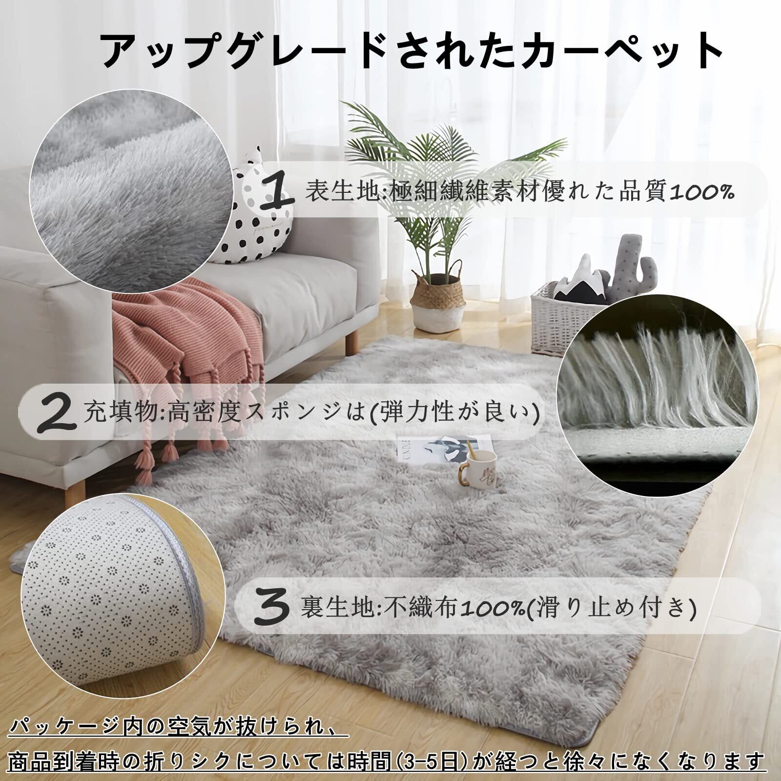 「安心のシャギーラグ」カーペットの表面の綿毛は空気に浮遊してちり粒子を捕捉して吸収することができ、室内の空気質量を改善します。ホルムアルデヒドも未検出なので、抵抗力が弱い子供、年配がいる家庭に対して安心のラグです。