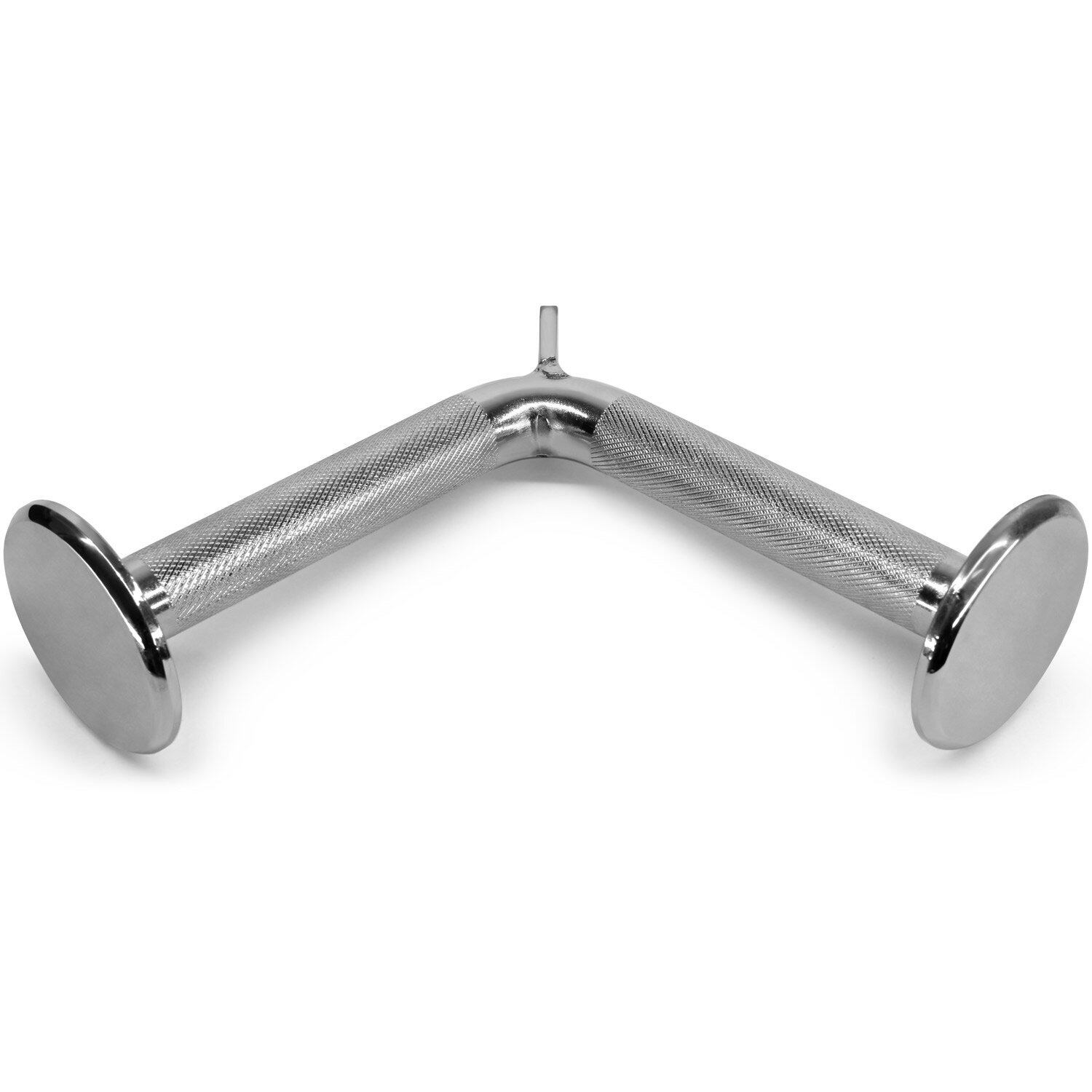 「耐久性の構造」V字型バーは様々なプーリーマシンに適合する耐久性のあるスチール構造で、耐荷重は363kgまでです。ハンドル部分にはローレット加工が施されているので、しっかりグリップでき、汗をかいても錆びにくいようにクローム仕上げとなっています。