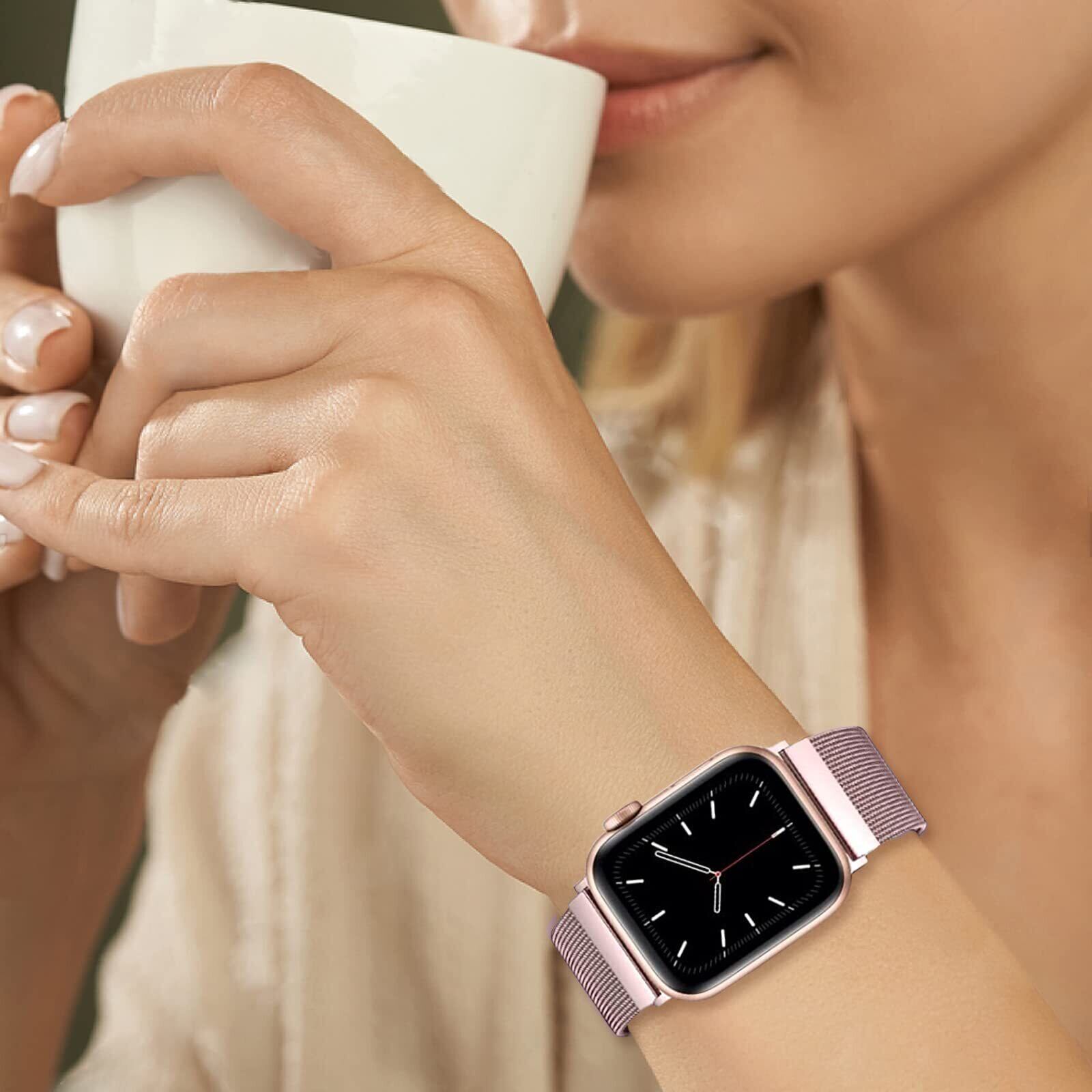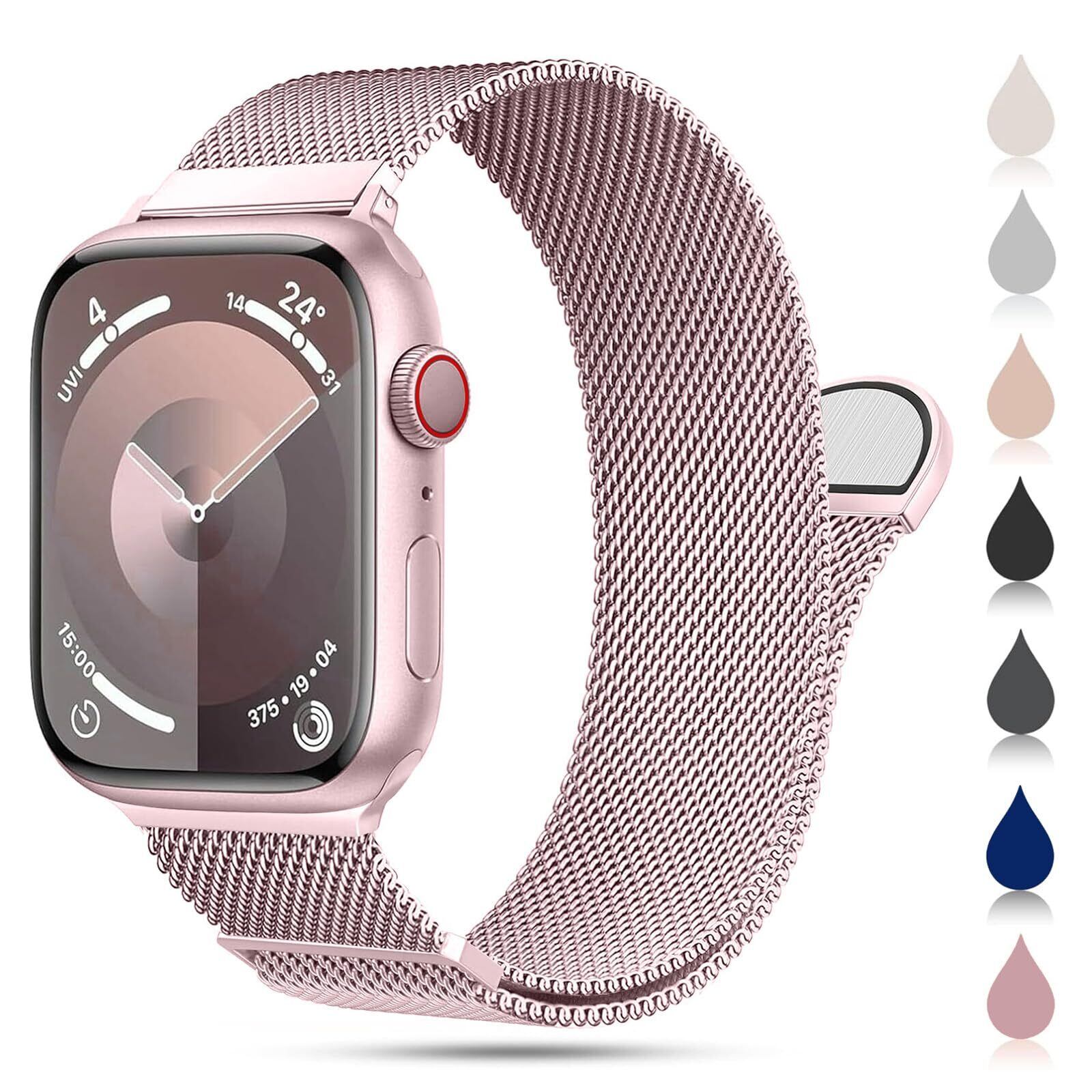 CAERMA コンパチブル アップルウォッチ バンド 38mm 40mm 41mm 42mm 44mm 45mm 46mm 49mm コンパチブル Apple Watch バンド ステンレス留め金製 男女兼用 長さ調節 強力な磁 通気 メッシュ ベルト コンパチブル Apple Watch Series 10/9/8/7/6/5/4/3/2/1/SE/Ultra 対応(42mm(Series 10)/41/40/38mm, ローズピンク) | BASE SHOP