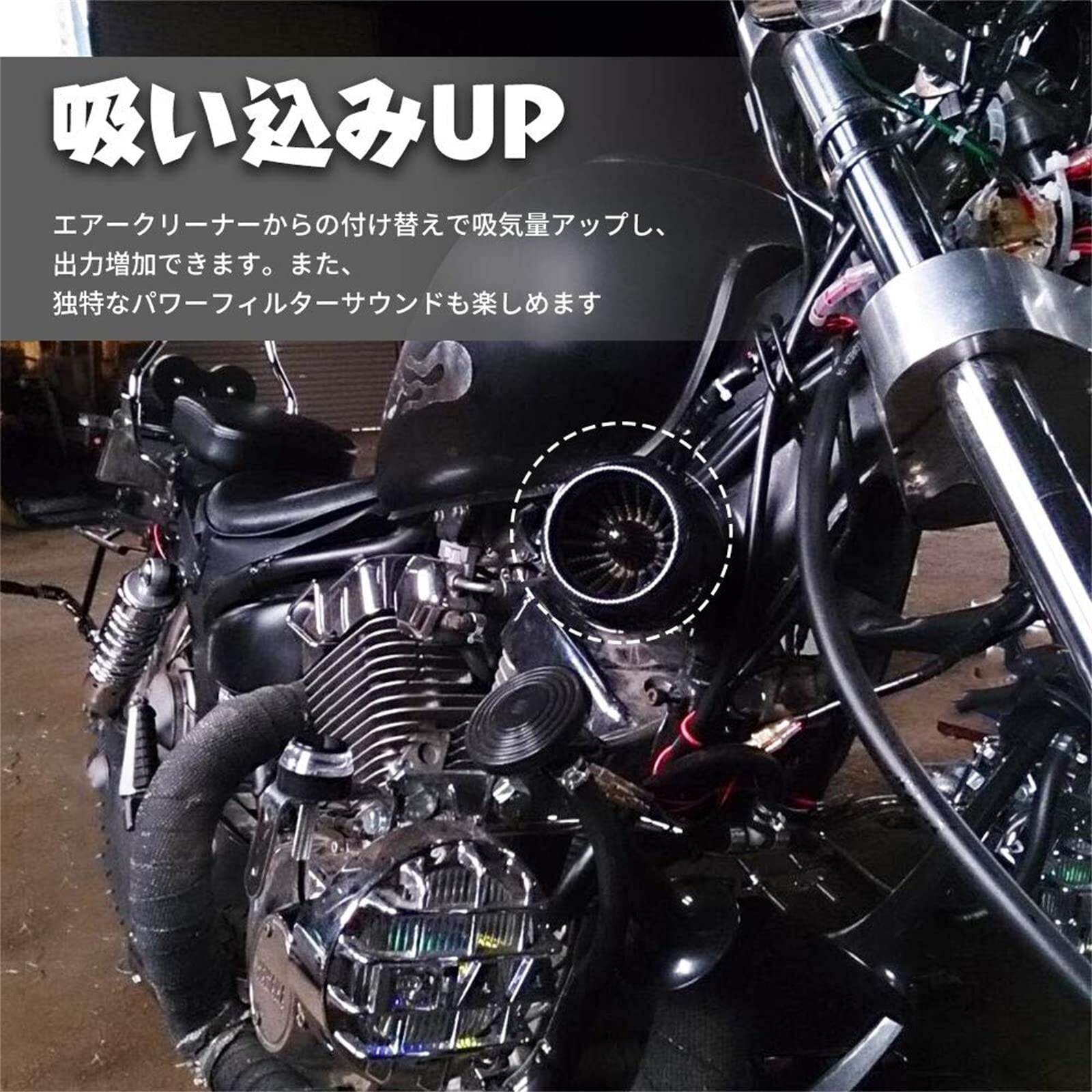 【吸い込みup】- エアークリーナーからの付け替えで吸気量アップし、出力増加できます。また、独特なパワーフィルターサウンドも楽しめます。