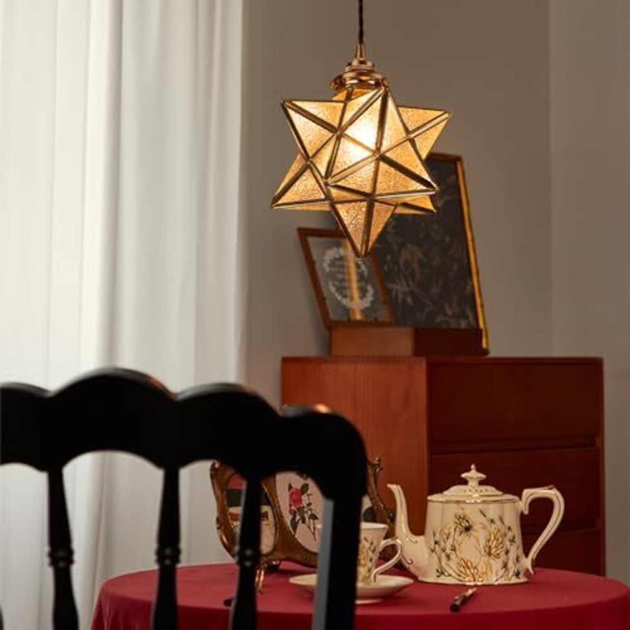 Cerdeco 幻想的に広がる星のシルエット ペンダントライト 天井 照明 吊り下げ照明 雰囲気たっぷりな影 1灯 真鍮&ガラス インテリア照明 間接照明 手軽に贅沢 星形 引掛けシーリング (すりガラス) PDT46