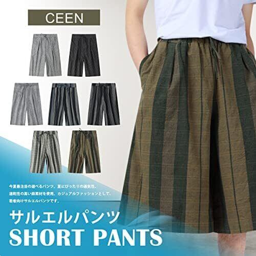 [CEEN] サルエルパンツ 七分丈 メンズ 綿麻 リネン ストライプ柄 ワイドパンツ 夏服 幅広ゴム 調整紐 快適 部屋着 ガウチョパンツ ハーフパンツ ゆったり 夏ワイドパンツ | BASE SHOP