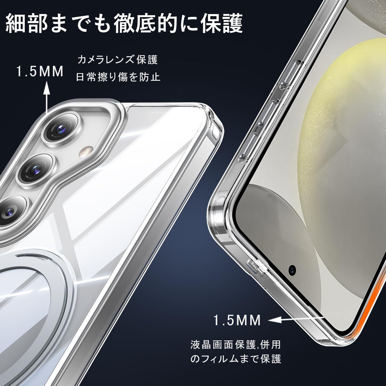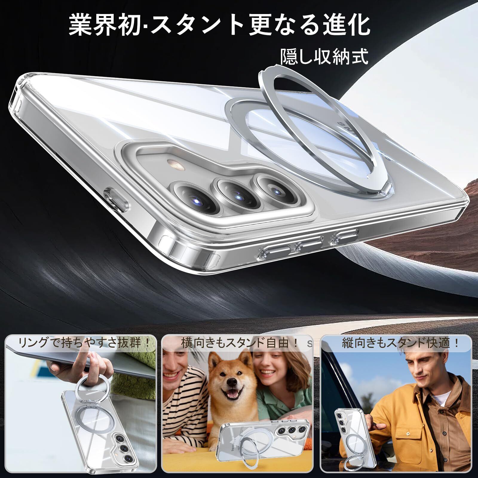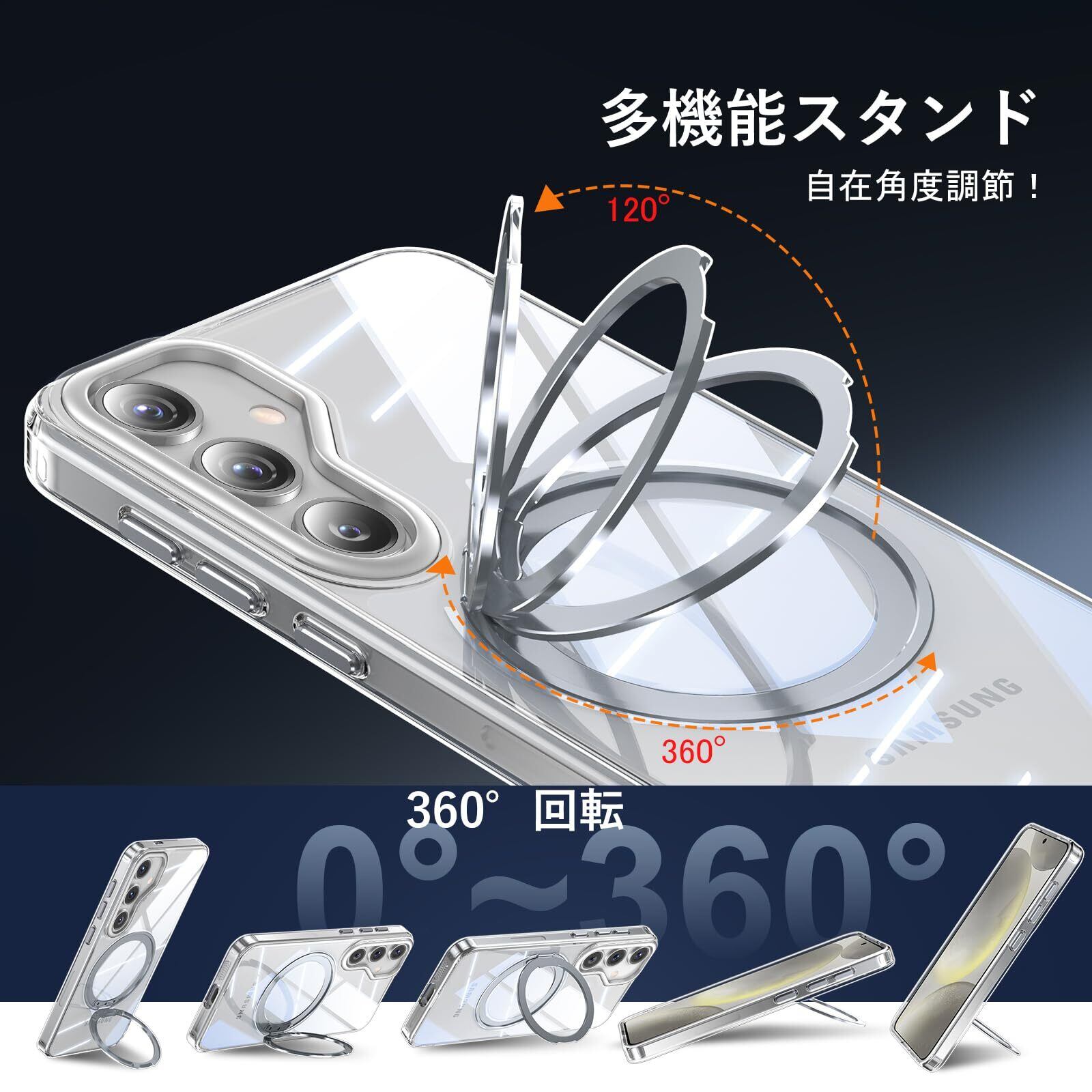 Galaxy S25 用 ケース Magsafe対応 ギャラクシーs25 / SC-51F / SCG31 カバー 360°回転スタンド Uovon スマホケース 携帯ケース ワイヤレス充電 車載ホルダー 対応 ストラップ穴付き 指紋防止 黄变防止 ・ クリア